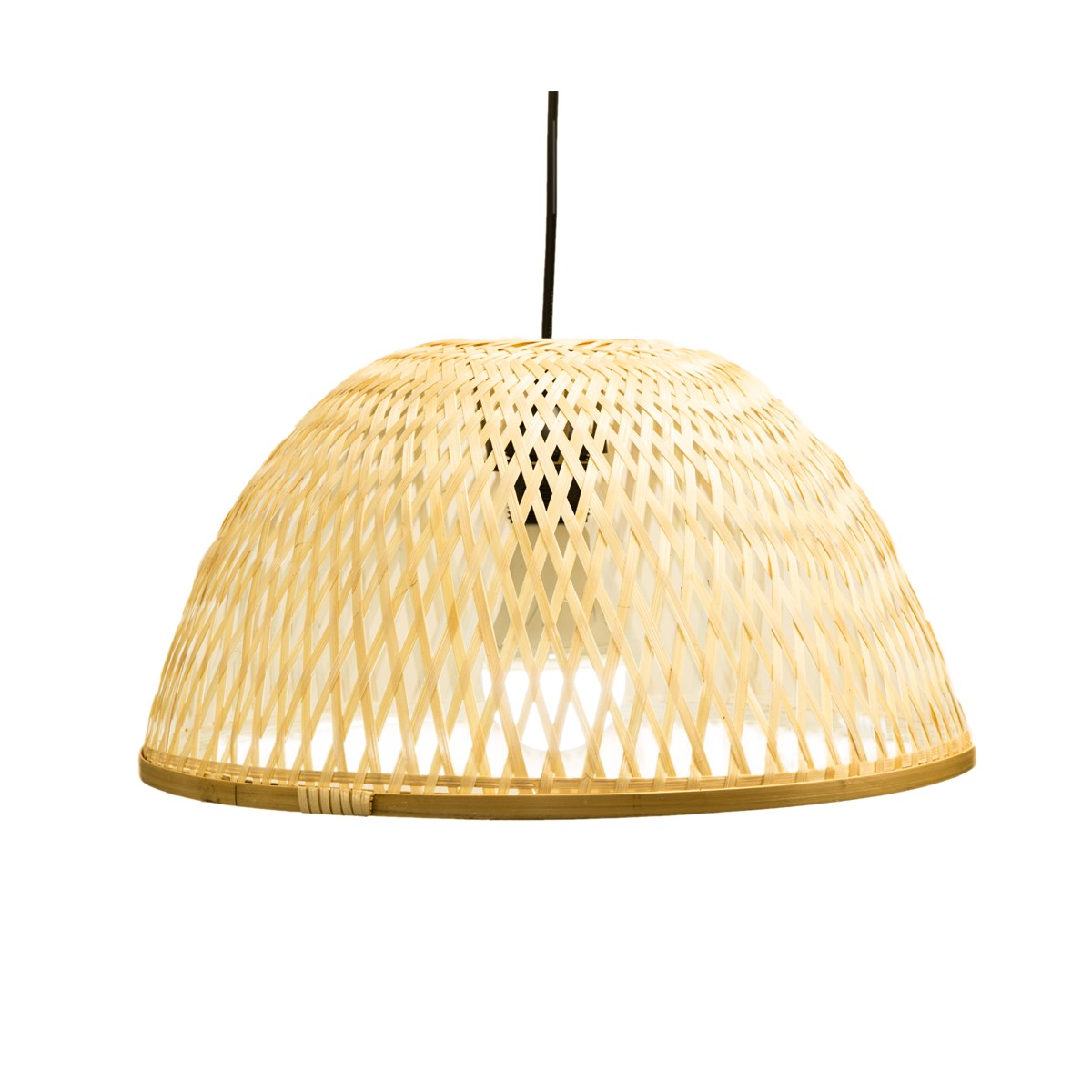 Pantalla de bambú natural trenzado. Pantalla natural diseñada para combinar con un portalámparas creando una lámpara de techo. La luz se proyecta tanto por la parte inferior como a través del trenzado del bambú. Modelo Sena con 40 centímetros de diámetro.