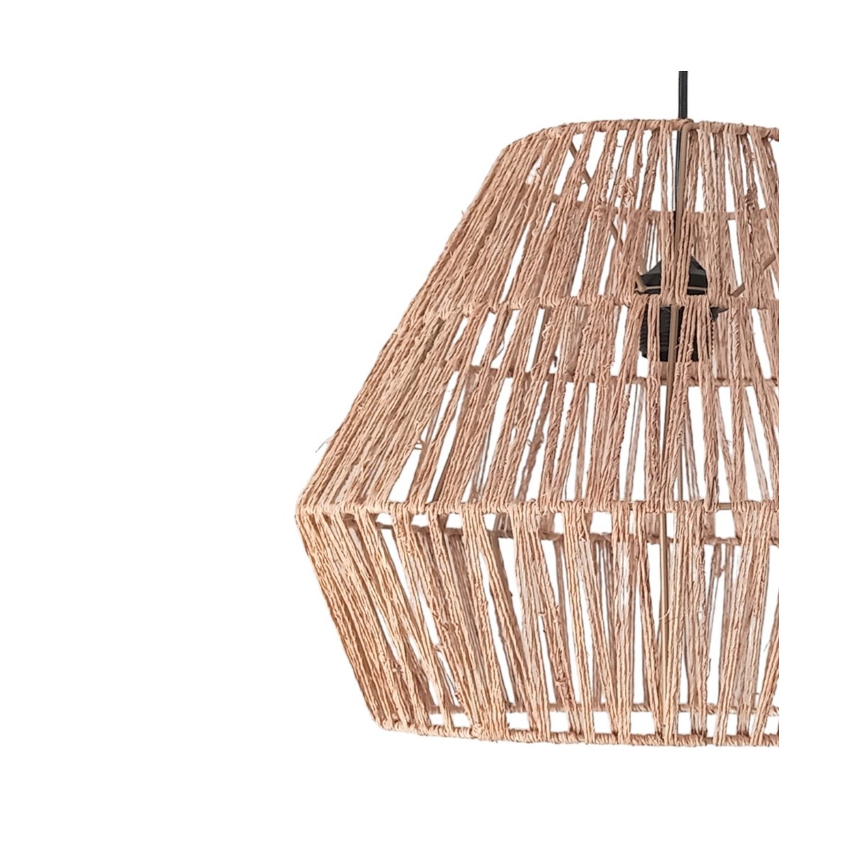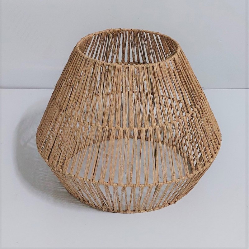 Pantalla de Algas Tenai. La estructura de la pantalla está cubierta por finas cuerdas de yute natural que le da ese toque y estilo único a la pantalla. Coloca un pendel de techo E27 para crear una lámpara colgante boho chic para tu negocio. Altura de 30 centímetros y diámetro inferior de 40 centímetros.