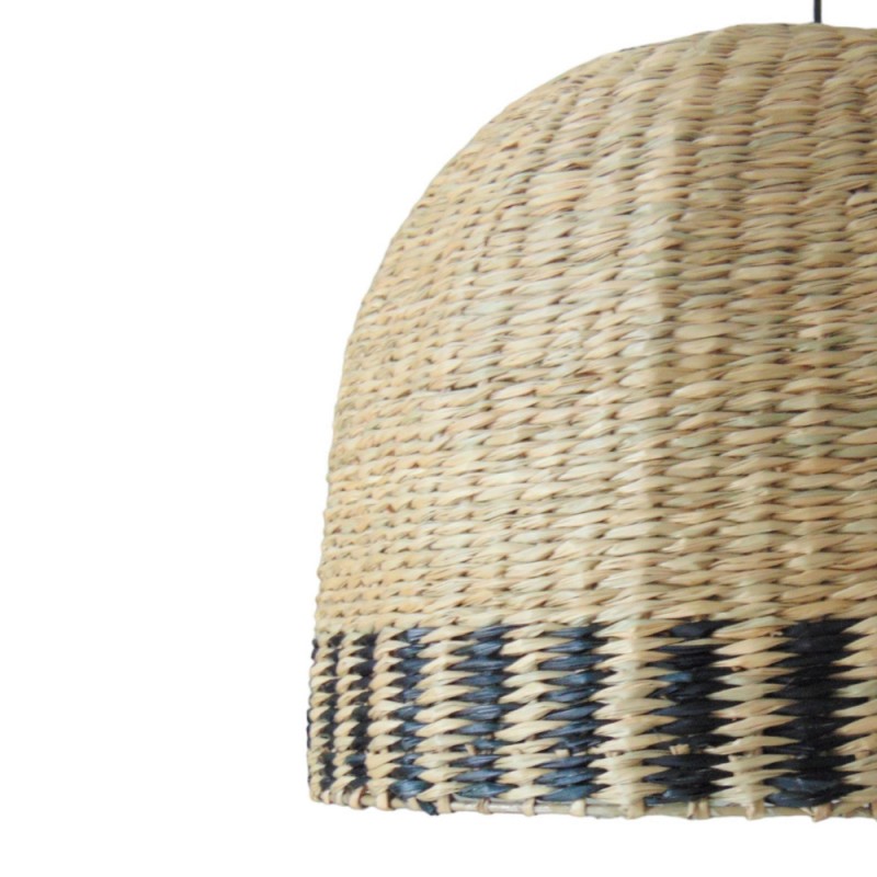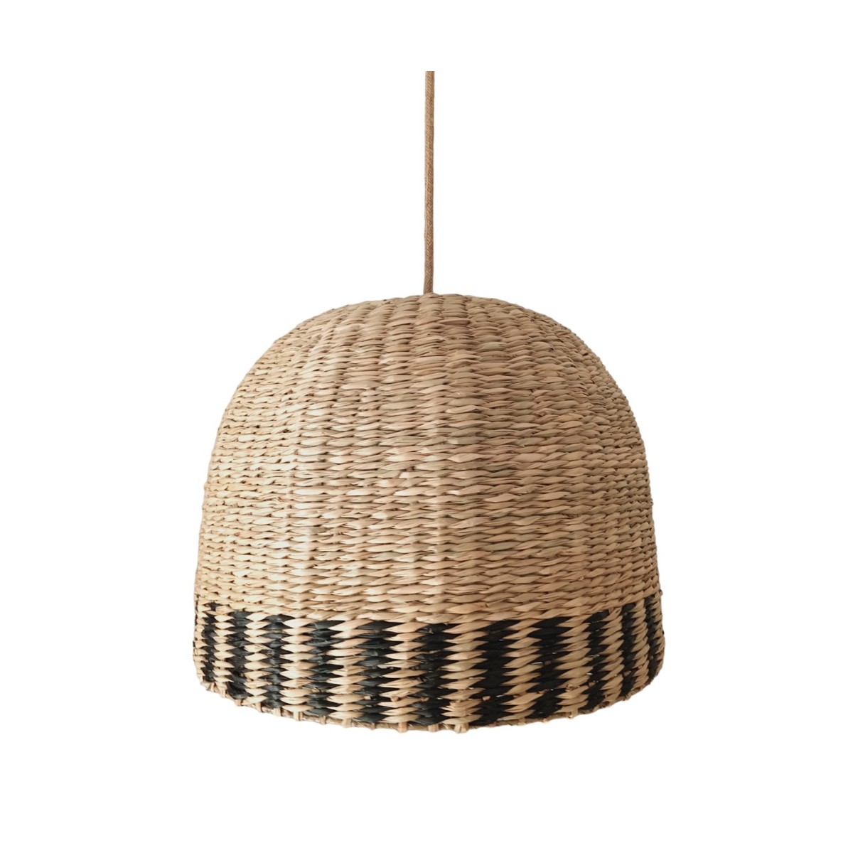 Pantalla de algas naturales Keyla. Pantalla en forma de cúpula con diámetro de 40 centímetros hecha de algas naturales. Coloca un pendel de techo E27 para crear una lámpara colgante boho chic para tu negocio. Altura de 30 centímetros y diámetro 40 centímetros.