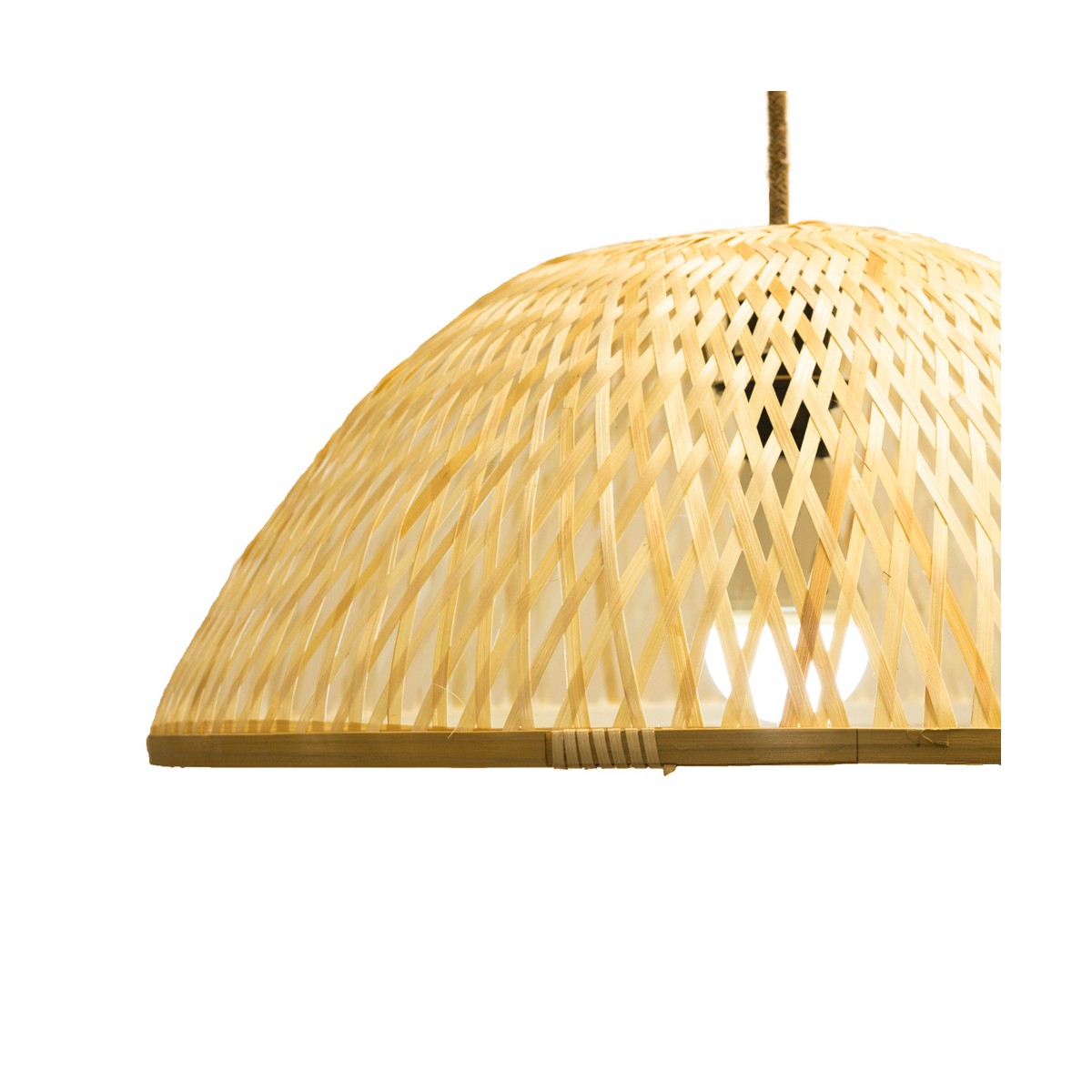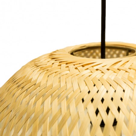 Pantalla de bambú natural trenzado. Pantalla natural diseñada para combinar con un portalámparas creando una lámpara de techo. La luz se proyecta tanto por la parte inferior como a través del trenzado del bambú. Modelo Sena Big con 50 centímetros de diámetro.