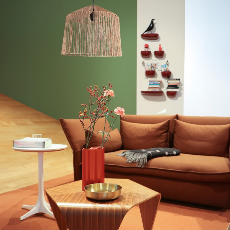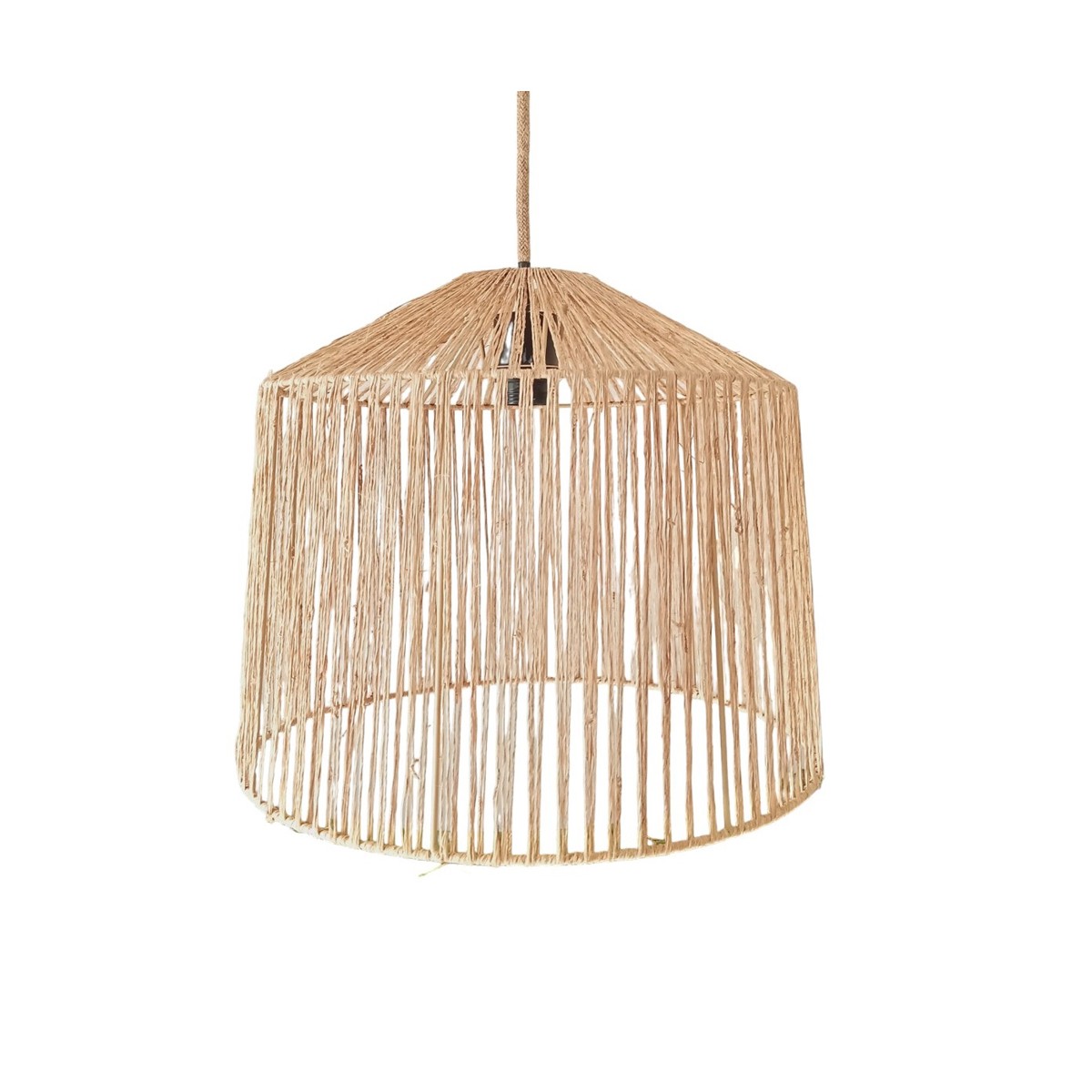 Pantalla para lámpara de techo Lidu. Esta pantalla está hecha con finas cuerdas de yute que le dan ese toque boho natural único. Coloca un pendel de techo E27 para crear una lámpara colgante boho chic para tu negocio. Al ser abierta, la pantalla puede combinarse además con una bombilla decorativa de filamentos o cristal tono ámbar.