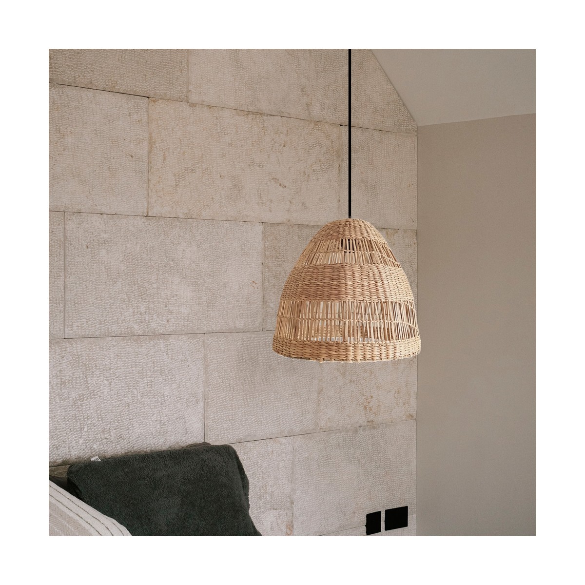 Pantalla de algas naturales Noonu. Pantalla natural en forma de cúpula hecha fibras de algas trenzadas. El trenzado permite crear un acogedor efecto de iluminación cuando la luz pasa ligeramente a través de la pantalla. Combínala con un portalámparas para crear una lámpara colgante.