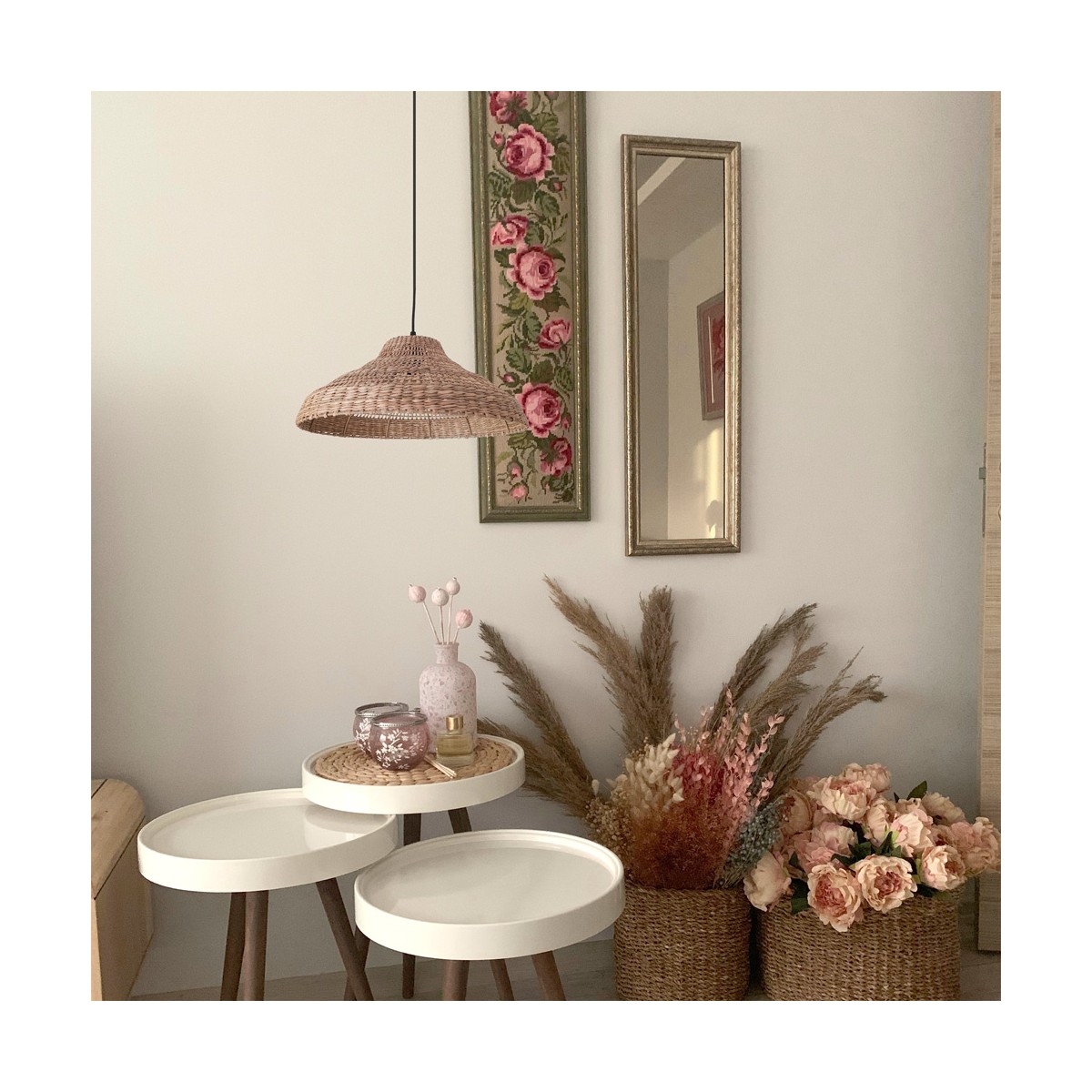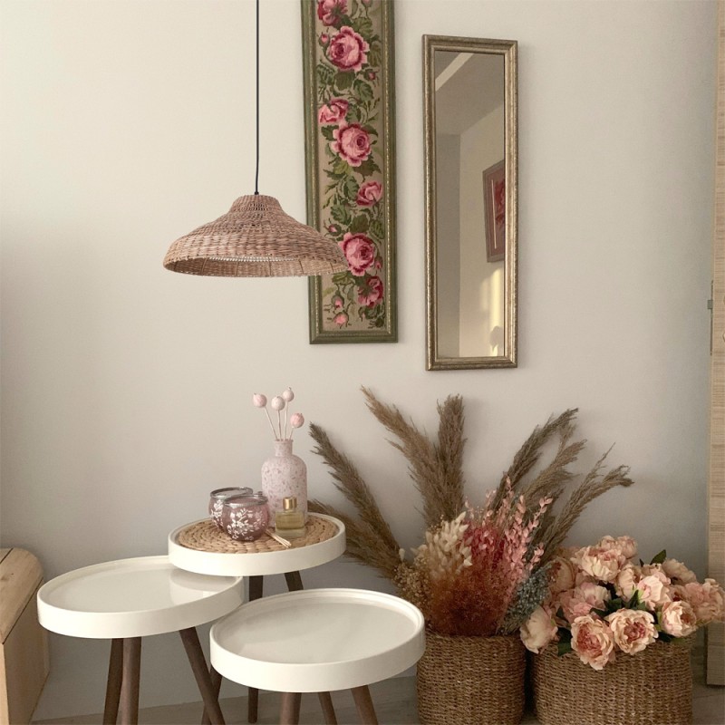 Pantalla de algas naturales Ari pequeña. Pantalla fabricada con fibras naturales de algas creando una decorativa pantalla boho chic. Combina esta pantalla con un portalámparas de color negro o cuerda para crear una lámpara de techo.