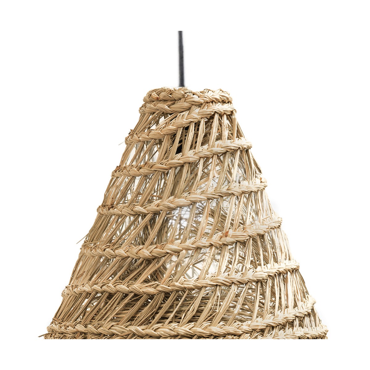 Pantalla de estilo natural Medu. Pantalla hecha con fibras de algas creando un diseño natural ideal para proyectos contract. El trenzado permite crear un acogedor efecto de iluminación cuando la luz pasa a través de la pantalla. Combínala con un portalámparas para crear una lámpara colgante.