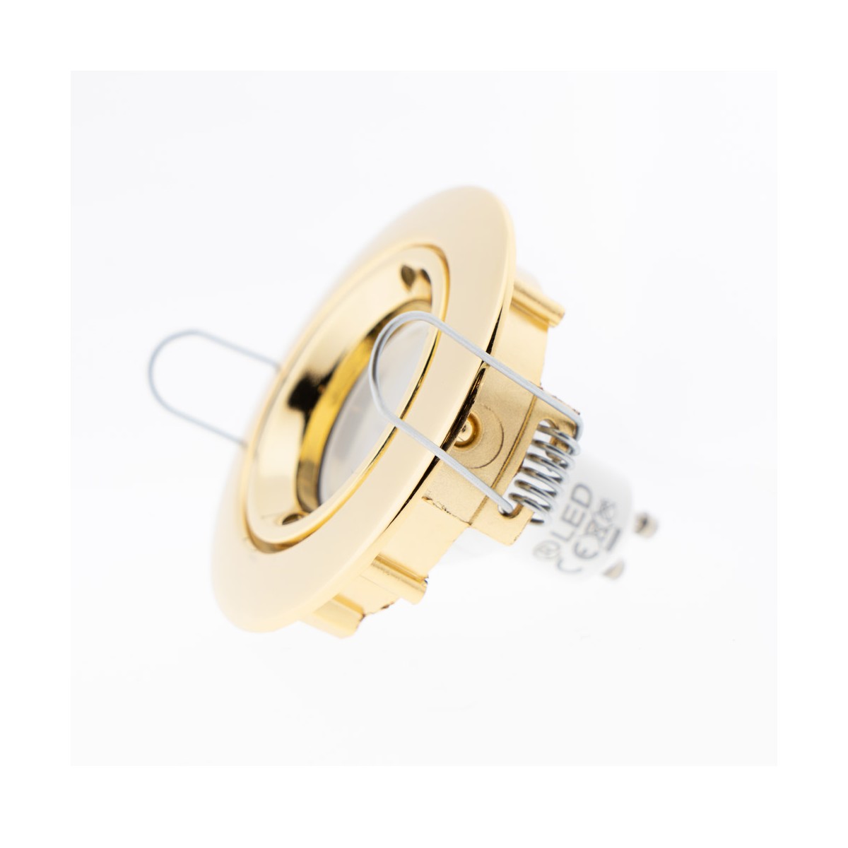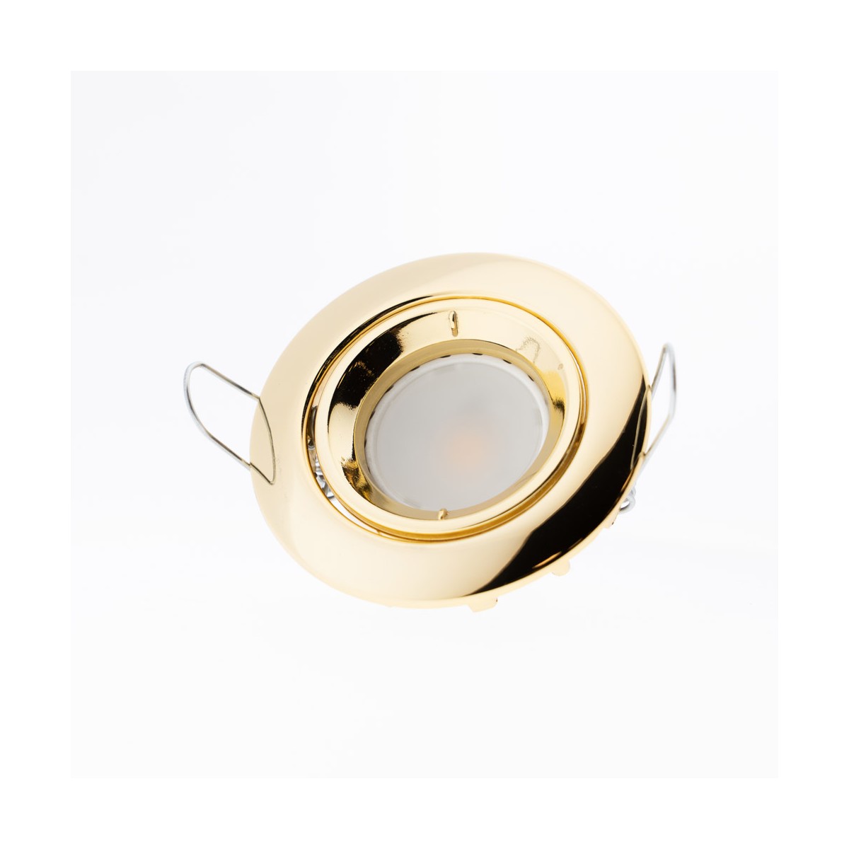 Empotrable redondo color oro para instalar en el techo. La gama de empotrables dorados es un TOP VENTAS debido a su demanda para la realización de proyectos contract. Con un elegante acabado dorado, el empotrable ofrece una compacta forma circular, es fácil de instalar y queda totalmente integrado en el techo. Una vez colocada la bombilla, el punto de luz puede orientarse con un ángulo de basculación de 30º para dirigir ligeramente la iluminación.