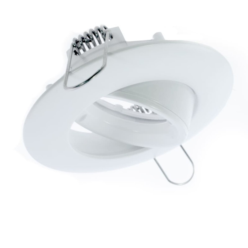 Empotrable basculante circular para proyectos de iluminación. Los empotrables de color blanco son unos de los modelos más solicitados para la realización de proyectos gracias a su fácil integración en el techo. Ofrece un compacto diseño circular, sencillo y muy práctico para instalar en todo tipo de estancias como dormitorios, salones, recibidores o zonas de paso. Al ser basculante con un grado de inclinación de hasta 30º, puedes de manera sencilla dirigir ligeramente la iluminación hacia un lado o el otro. Esta gama de empotrables está fabricada 100% en España utilizando inyección de zamak para ofrecer la máxima calidad. Disponible en varios acabados.