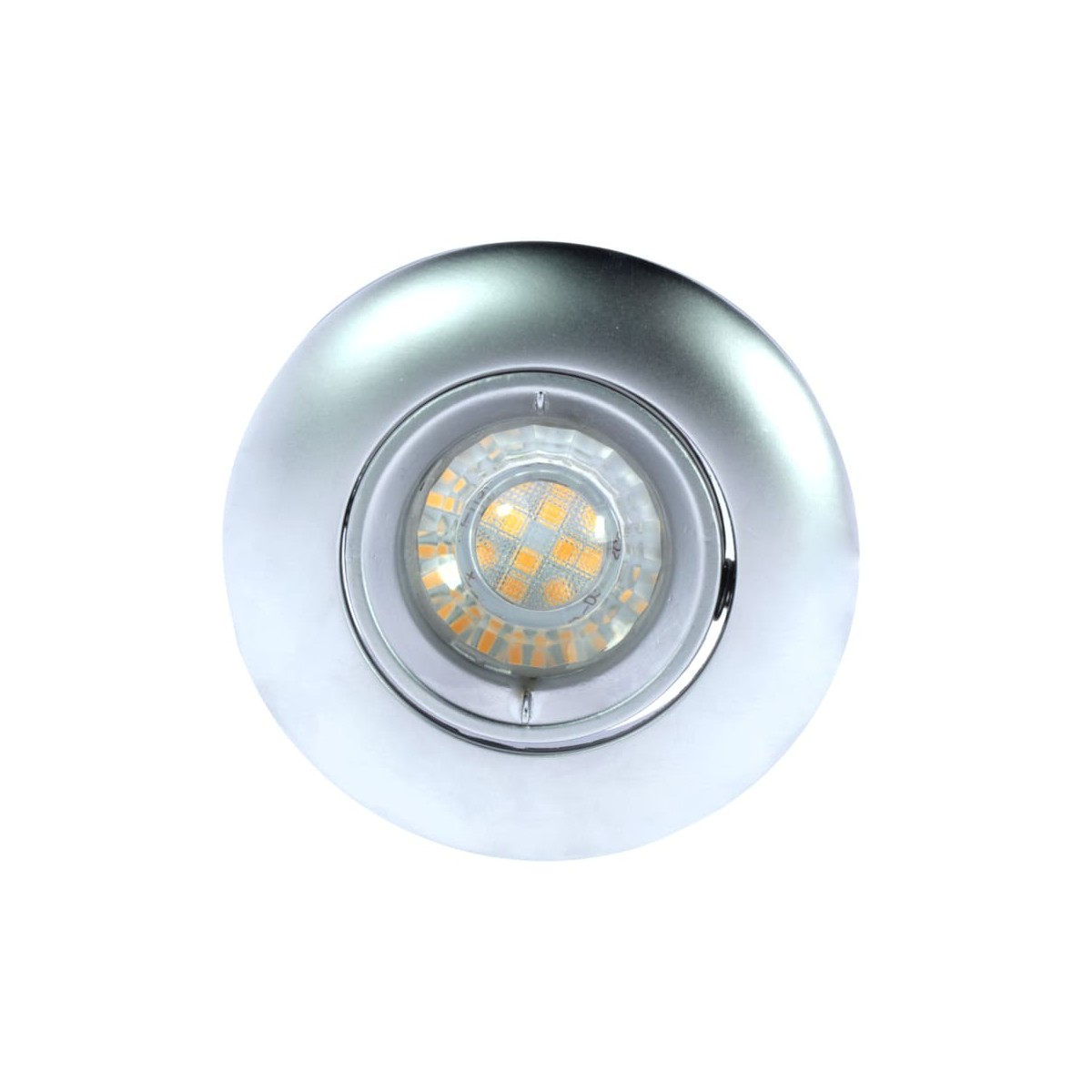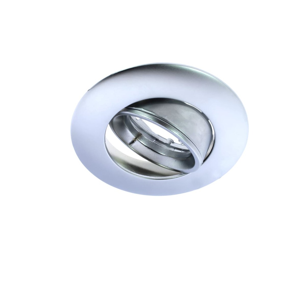 Empotrable de techo níquel satinado con punto de luz basculante. Empotrable redondo basculante color níquel satinado, fabricado con materiales 100% españoles buscando ofrecer la máxima calidad. Este empotrable circular se presenta como una solución ideal para dar un toque moderno a la hora de iluminar espacios de interior. El aro es de inyección de zamak con un acabado níquel satinado que le aporta este toque moderno al empotrable. Al ser basculante con un ángulo de inclinación de 30%, el empotrable es perfecto para la realización de proyectos de iluminación en hogares, hoteles y negocios. Puedes adquirir el empotrable con un portalámparas para bombilla GU10 o G5,3. Bombilla no incluida.