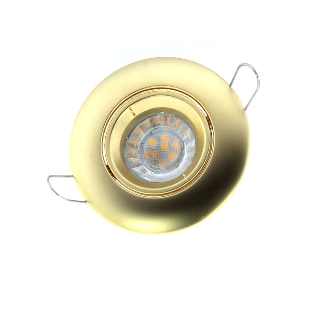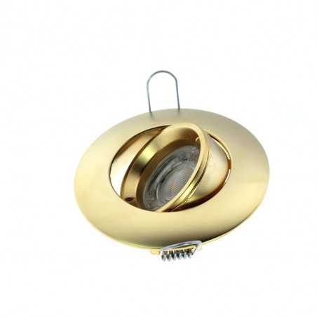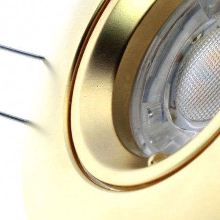 Empotrable basculante oro mate para proyectos de iluminación contract. Este empotrable de techo se presenta como uno de los más demandados de su gama debido al elegante acabado oro mate que presenta. La característica principal del empotrable es ser basculante, permitiendo modificar la posición del punto de luz con un ángulo de inclinación de 30º. El acabado oro mate de su estructura de zamak le dará un toque distintivo a la estancia donde decidas instalarlo. Empotrable de techo fabricado con materiales 100% españoles de alta calidad bajo la marca Ángel Aparicio Spain. Puedes adquirir el empotrable con portalámparas GU10 o G5,3.