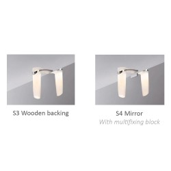 Los apliques para espejo de baño de la marca Angel Aparicio Spain cuentan con tres modos de instalación, permitiendo colocarlos directamente en el espejo, sobre el mueble, en el tablero trasero.