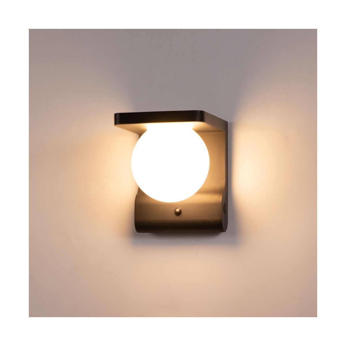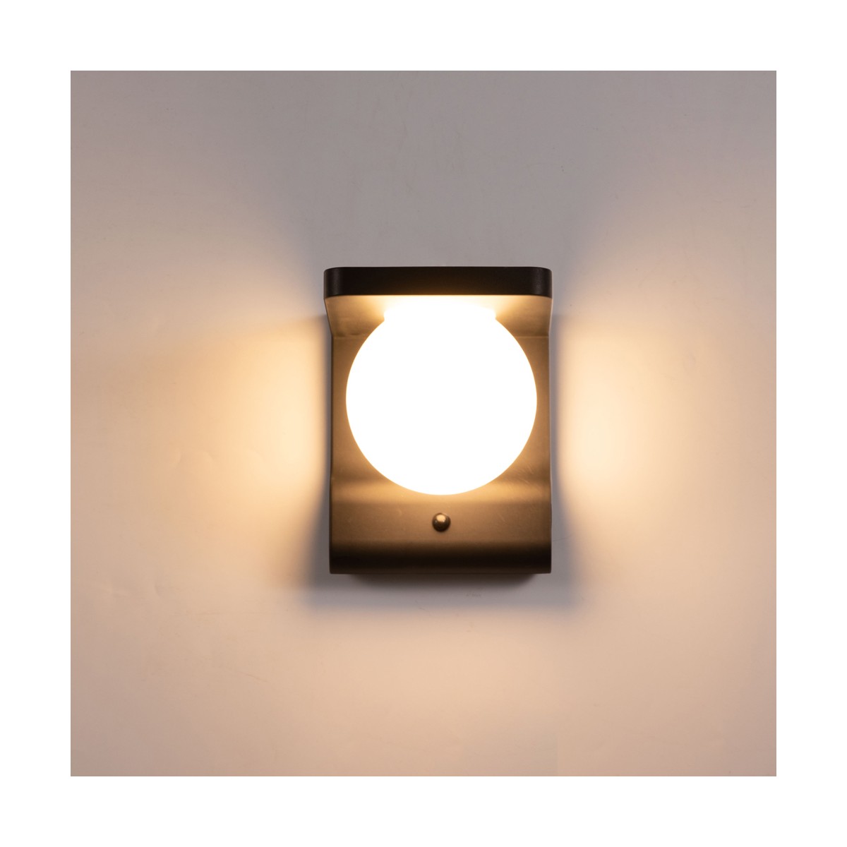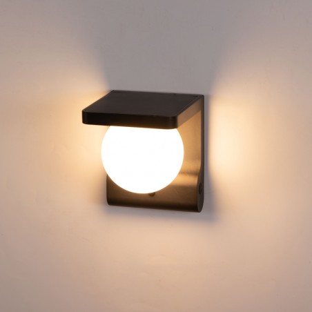 Aplique de exterior con panel solar Surfe. Gracias a su panel solar y su batería recargable, puedes utilizar el aplique sin necesidad de consumo eléctrico. Lleva integrada tecnología LED en tono blanco cálido aportando una suave iluminación de ambiente. Cuenta con sensor PIR. Grado IP54.