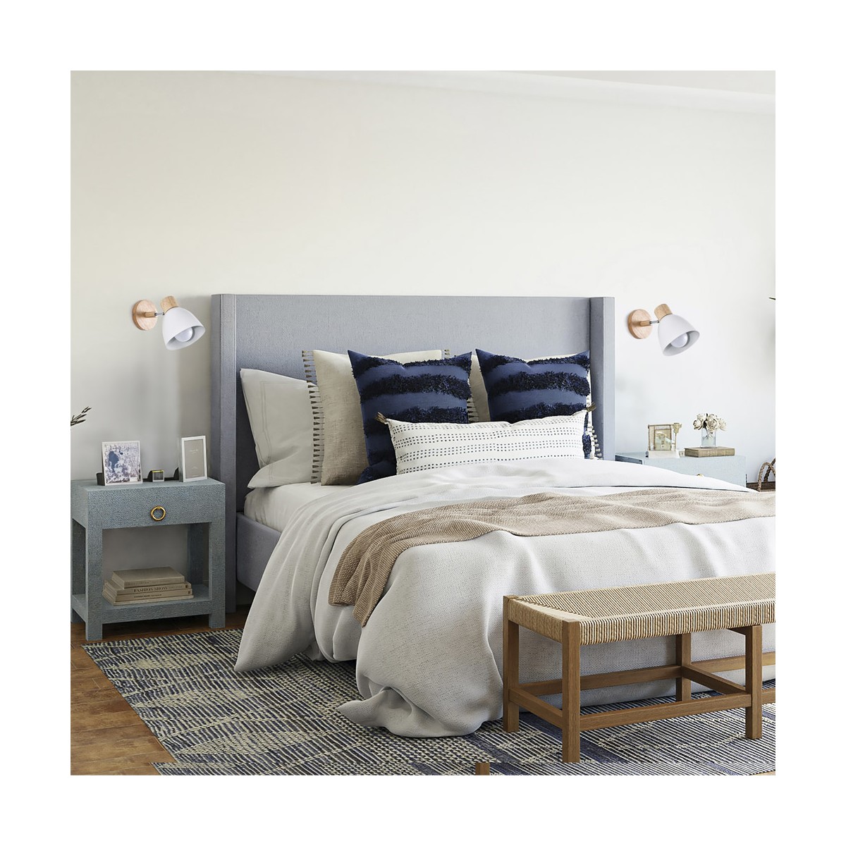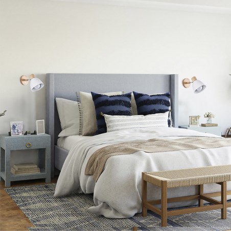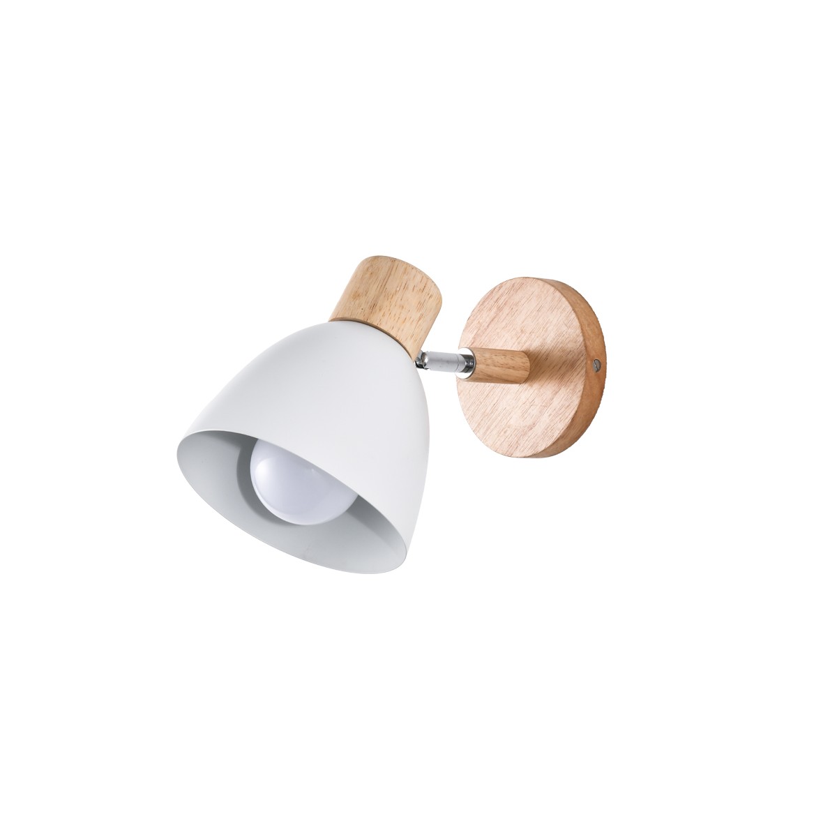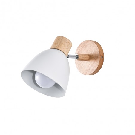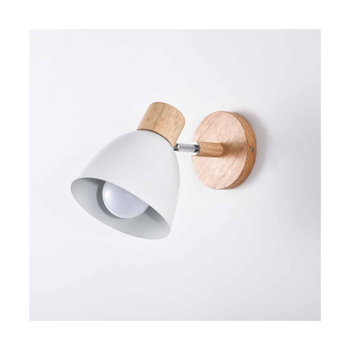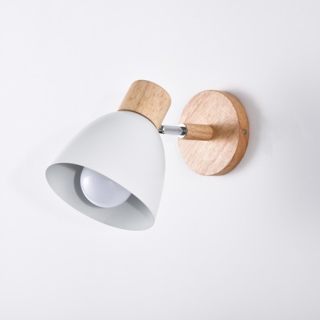 Aplique de pared orientable Nami. Aplique de pared de diseño nórdico combinando pantalla metálica de color blanco con base y decoración en madera. Puedes orientar la posición de la pantalla arriba y abajo (180º) para dirigir la iluminación. Aplique de pared muy práctico para colocar junto al cabecero de la cama como iluminación.