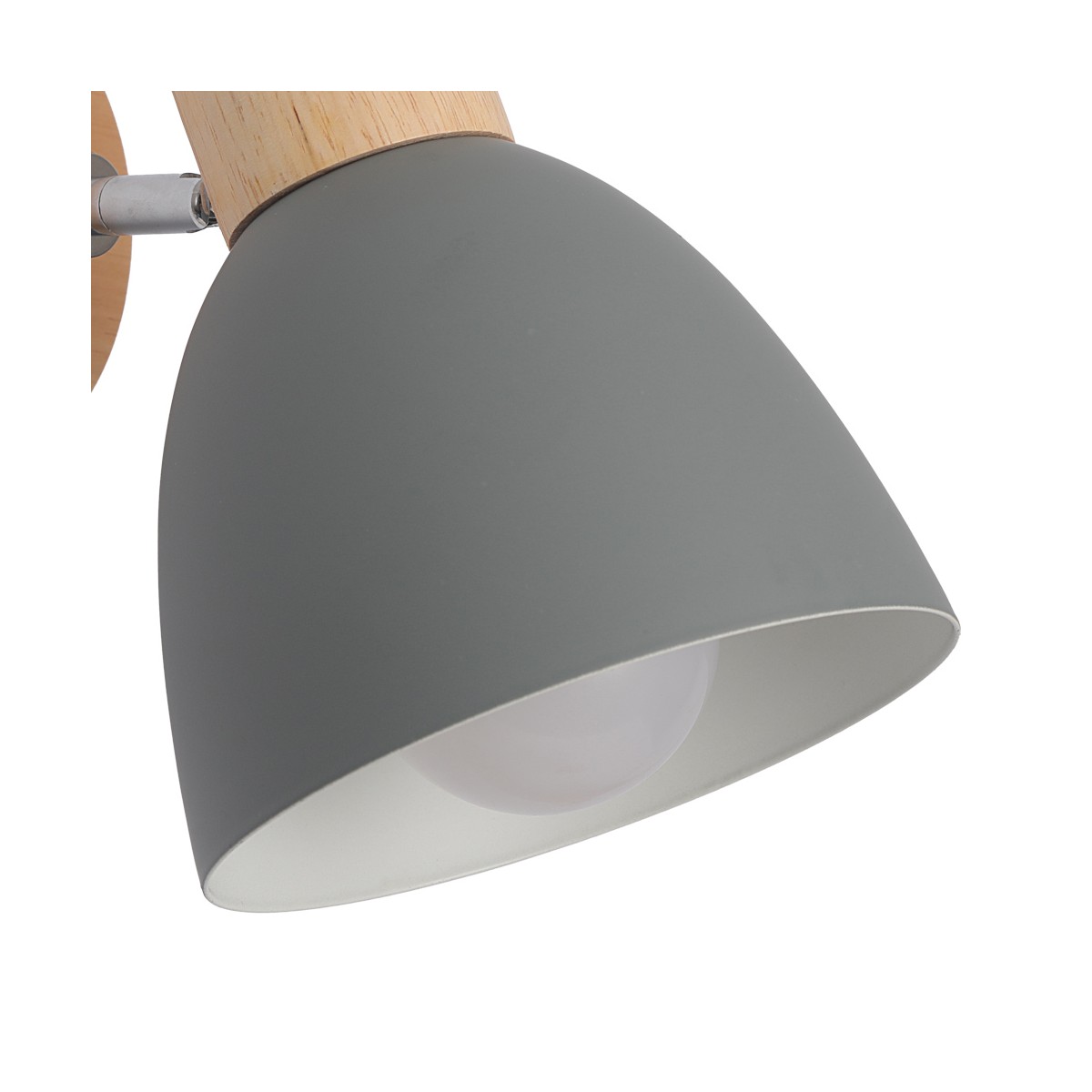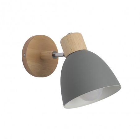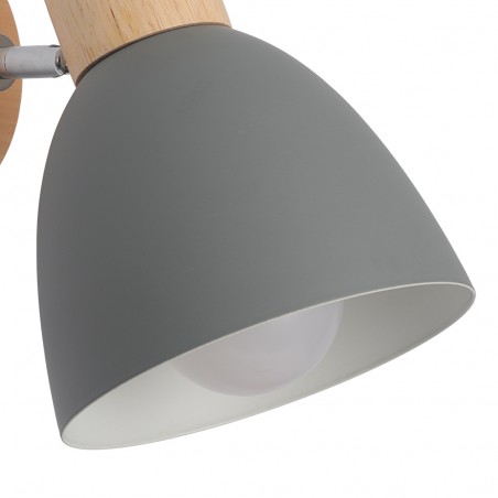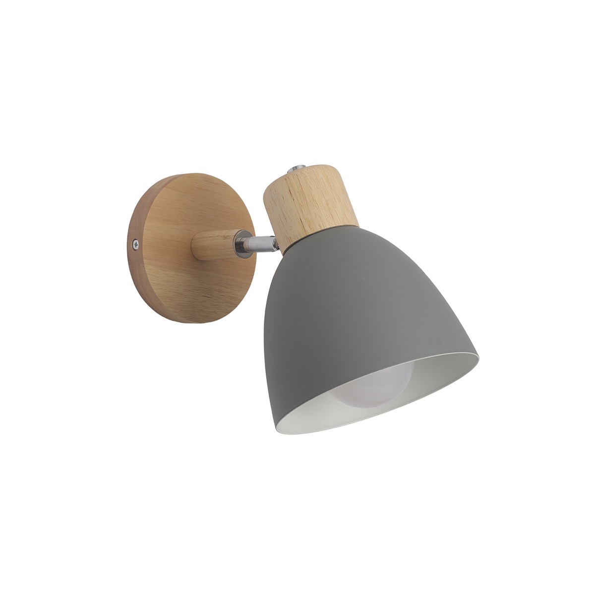 Aplique de pared orientable Nami. Aplique de pared de diseño nórdico combinando pantalla metálica de color gris con base y decoración en madera. Puedes orientar la posición de la pantalla arriba y abajo (180º) para dirigir la iluminación. Aplique de pared muy práctico para colocar junto al cabecero de la cama como iluminación.