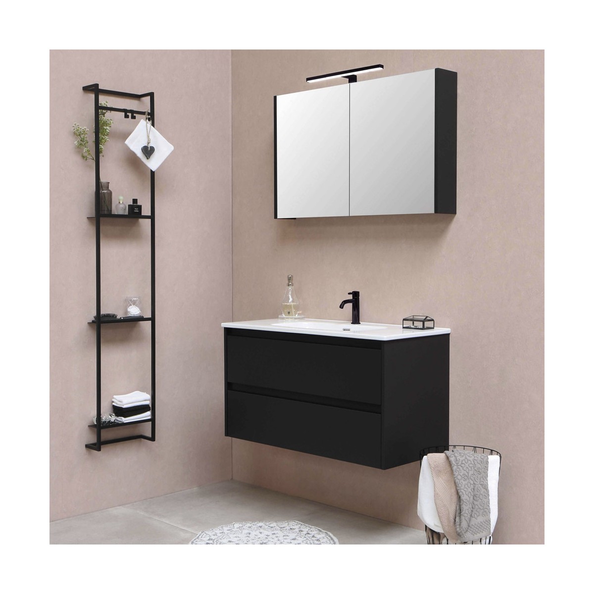 Aplique LED para espejos de baño Roth. Aplique con iluminación LED en tono blanco neutro diseñado para instalar como iluminación sobre el espejo del baño. Está fabricado en aluminio de color negro, con difusor de policarbonato, y cuenta con IP44 frente a posibles salpicaduras de agua. LED 8W, 560 lúmenes y 4000K.