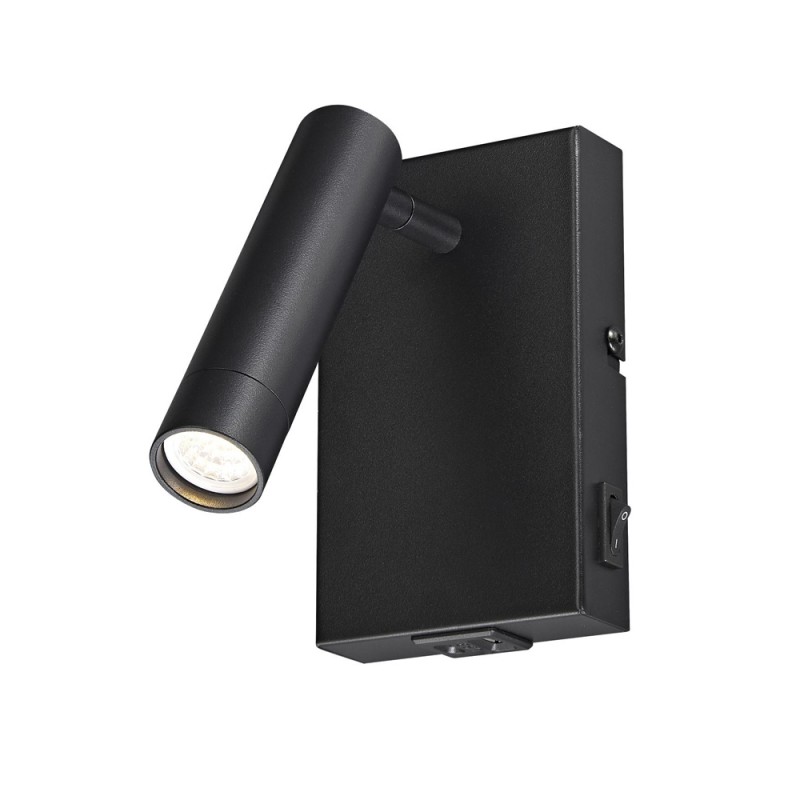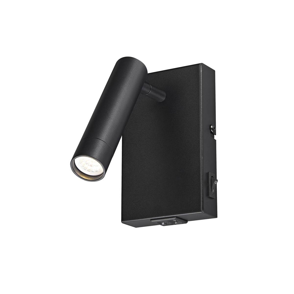 Aplique de pared con lector orientable Slim. Práctico aplique para instalar en la pared junto al cabecero de la cama o sobre la mesita de noche. Cuenta con un foco tubular orientable para utilizar como iluminación auxiliar o de lectura. El aplique tiene un interruptor ON/OFF en uno de los lados y dos puerto USB (A y C).