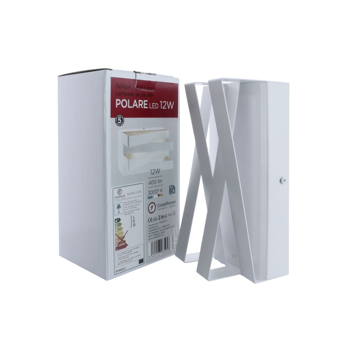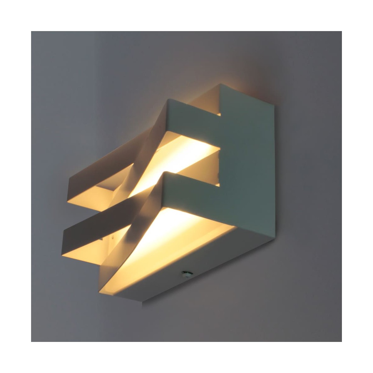Aplique de pared decorativo con iluminación led integrada de 12W con luz cálida de 3000K. Su estructura fabricada en hierro lacado en blanco mate crea un diseño geométrico muy original.