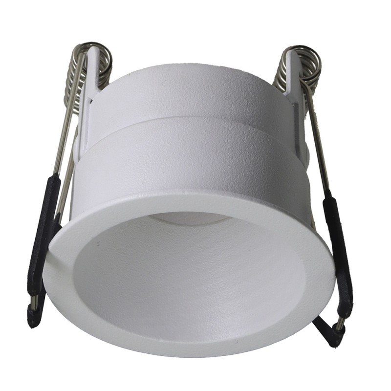 Empotrable de techo redondo blanco. Empotrable de techo fijo para iluminación funcional de interior. Diseño circular fabricado en aluminio color blanco texturizado. Instalación empotrado en el techo en un hueco de 4.80 centímetros. Ideal para proyectos contract de iluminación en hogares, tiendas, hoteles y negocios. Incluye portalámparas para bombillas GU10 PAR11.