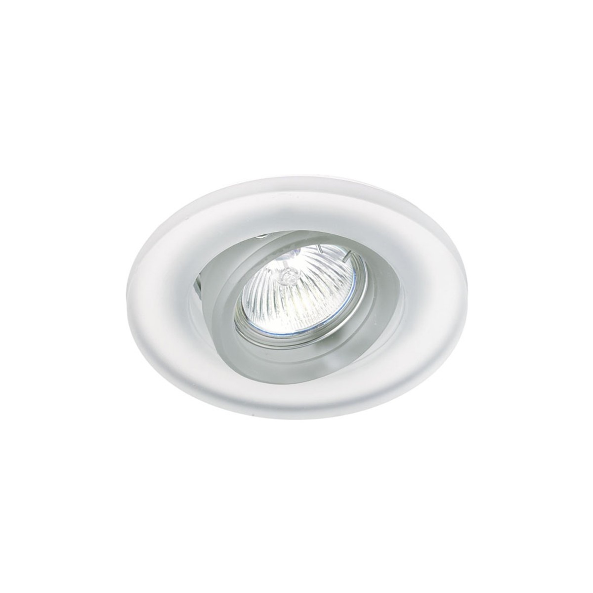 Empotrable halógeno orientable con estructura redonda fabricado en cristal blanco. Incluye portalámparas de 12V GU5.3 50mm.