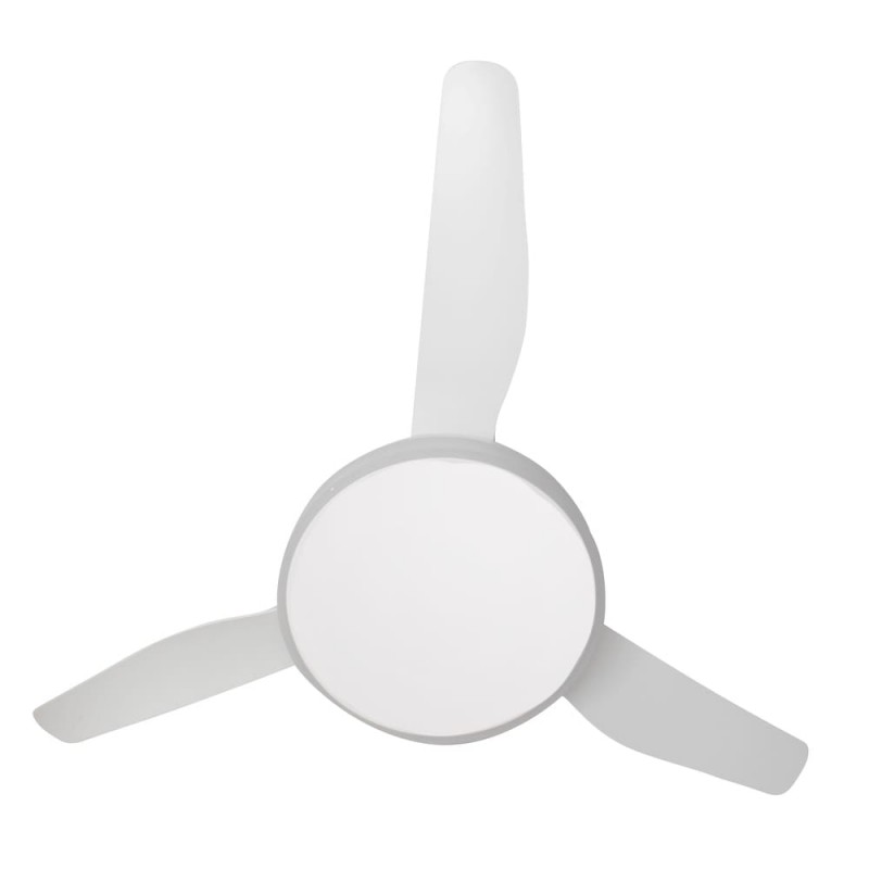 Ventilador de techo LED Aran para habitaciones grandes. Ventilador de techo de color blanco con tres aspas, perfecto para aportar ventilación en estancias de tamaño mayor a 20 metros cuadrados. Diseño moderno con motor silencioso de seis velocidades de giro, función inversa, brisa y temporizador (1-3-6h.). Crea el ambiente perfecto a la hora de iluminar y aportar ventilación en tu hogar con este ventilador de techo. Mando a distancia incluido.