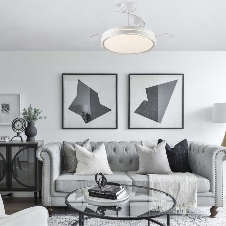 Ventilador LED aspas retráctiles Oku Blanco 72W 7920Lm CCT