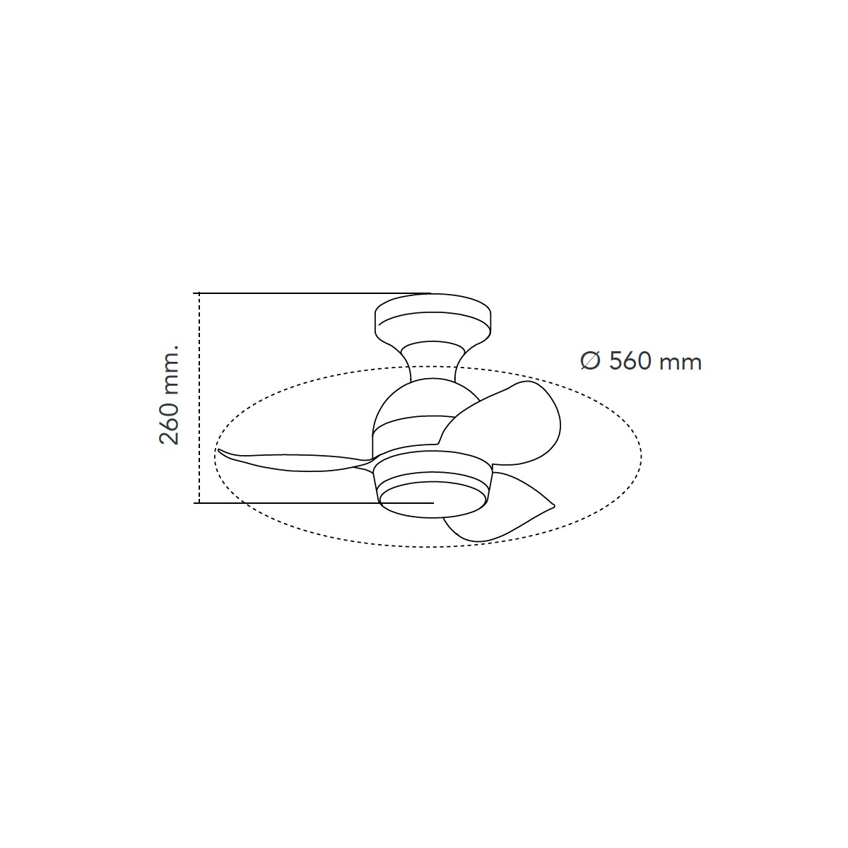 Ventilador de techo para habitaciones infantiles. Ventilador pequeño de tres aspas ideal para colocar en techos de habitaciones de niños y niñas. Aporta un agradable flujo de aire y emite muy poco de ruido en funcionamiento gracias a su motor DC. Además, cuenta con iluminación LED regulable en temperatura de color e intensidad de lúmenes. El ventilador es de color blanco con tres aspas acabado madera que le da un toque nórdico. Temporizador, función de giro inversa y memoria de encendido. Mando a distancia incluido.