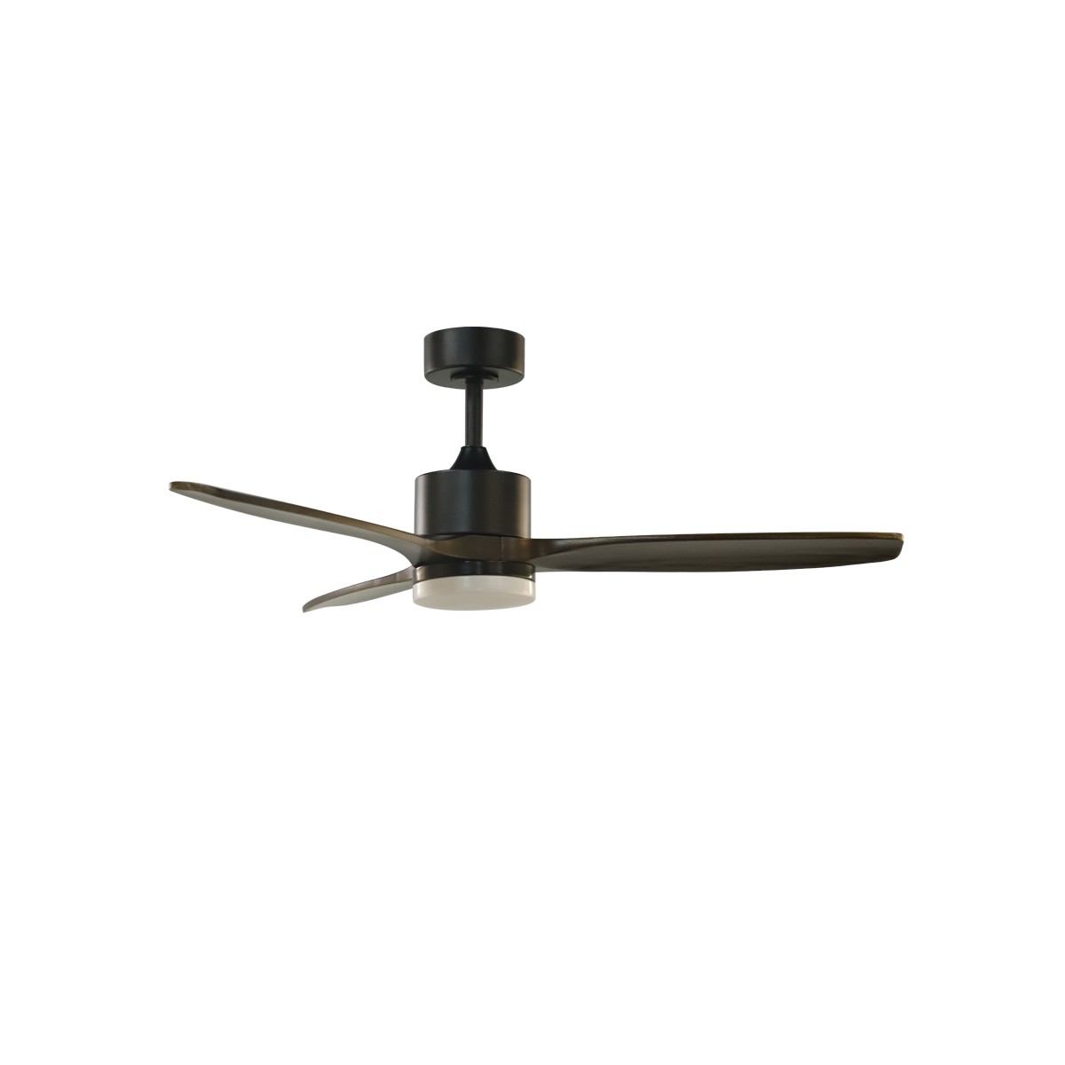 Ventilador de techo con motor DC de 6 velocidades e iluminación led integrada de 22W con tres tonos de luz y memoria de encendido. Este ventilador cuenta con las funciones inversa, brisa y ventilación. Incluye dos tijas de 13 y 20 cm para ajustar la altura del ventilador según tus necesidades. Desde el mando incluido en la caja, puede programarse el funcionamiento del ventilador (30' - 2H).