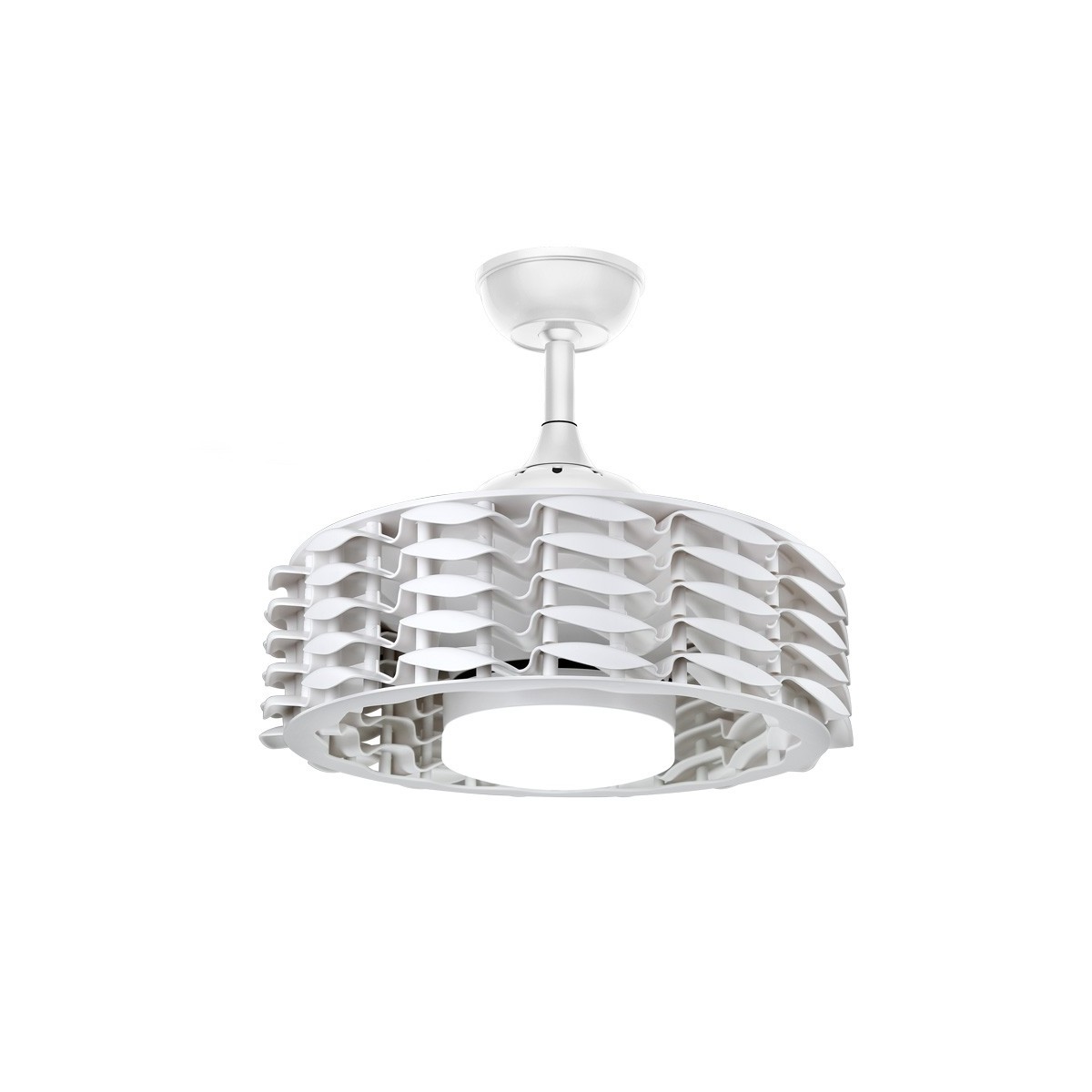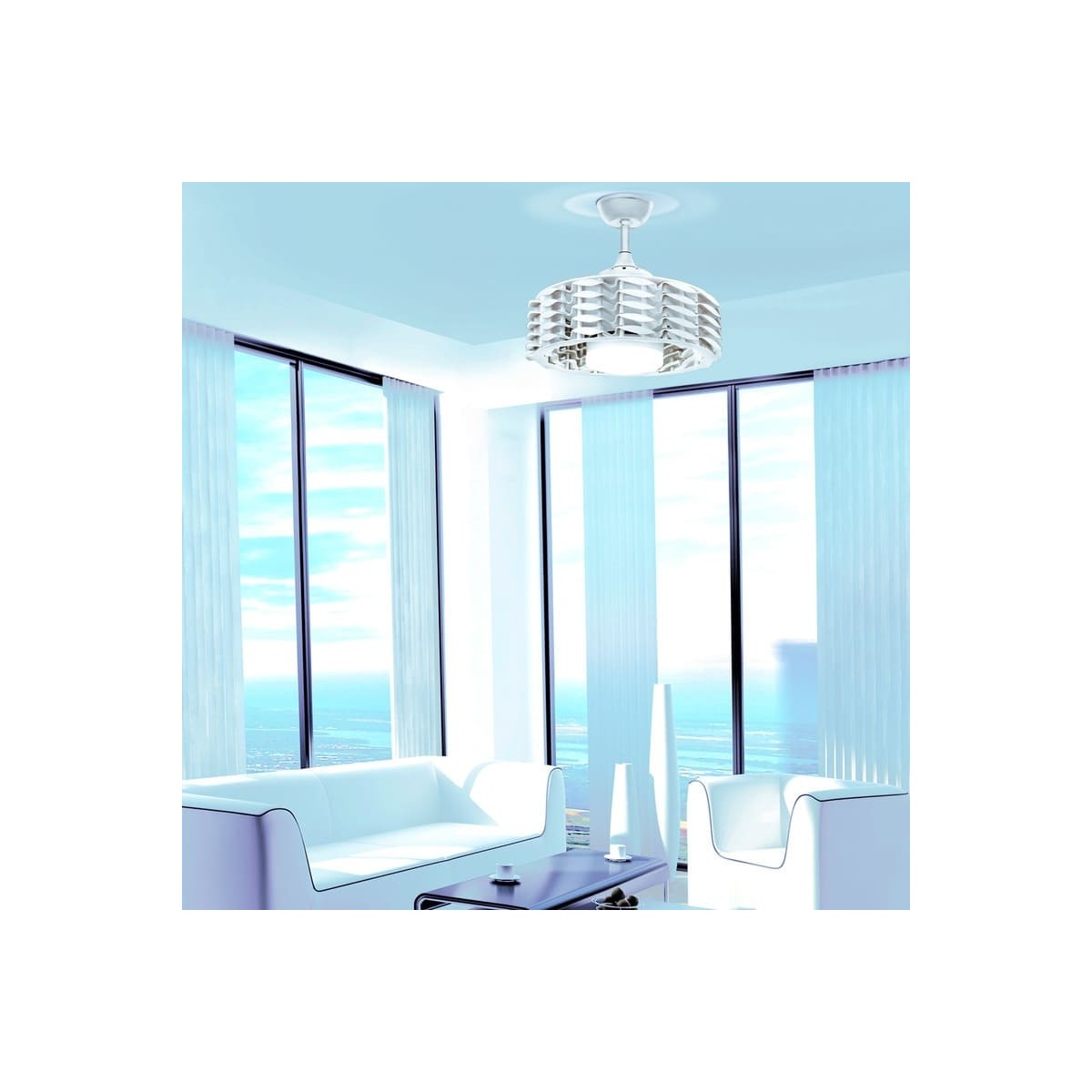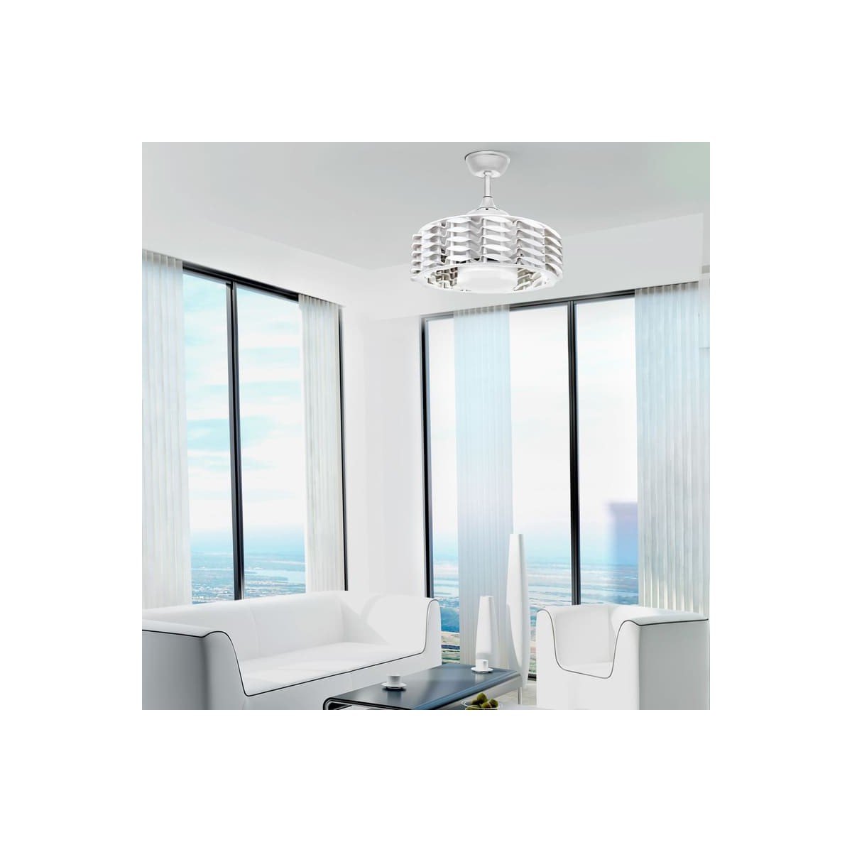 Ventilador de techo con motor DC. Su motor permite reducir el consumo energético a la vez que se consigue un menor ruido en su funcionamiento. Incluye dos tijas de 12.5 y 25 cm. Cuenta con iluminación LED integrada de 24W, 2410lm con tres tonos de luz (luz cálida, luz neutra y luz fría). El mando incluido dispone de la función de temporizador para programar el apagado después de 1-2-4-8 horas.