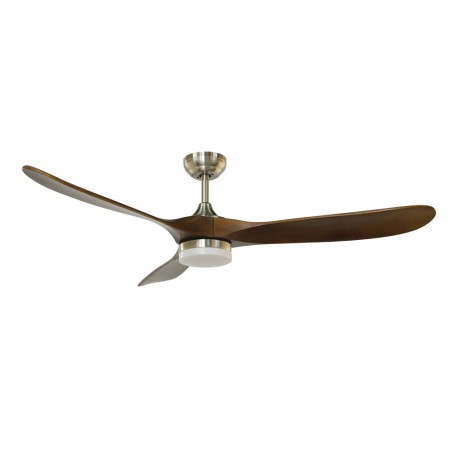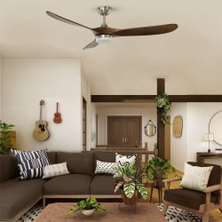 Ventilador de techo para estancias grandes con motor DC con palas de madera natural. Iluminación led integrada de 15W con tres tonos de luz. Funciona con 5 velocidades diferentes e incluye función verano invierno. Desde el mando puedes programar el apagado del ventilador estableciendo.