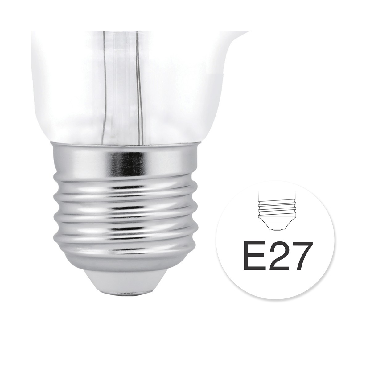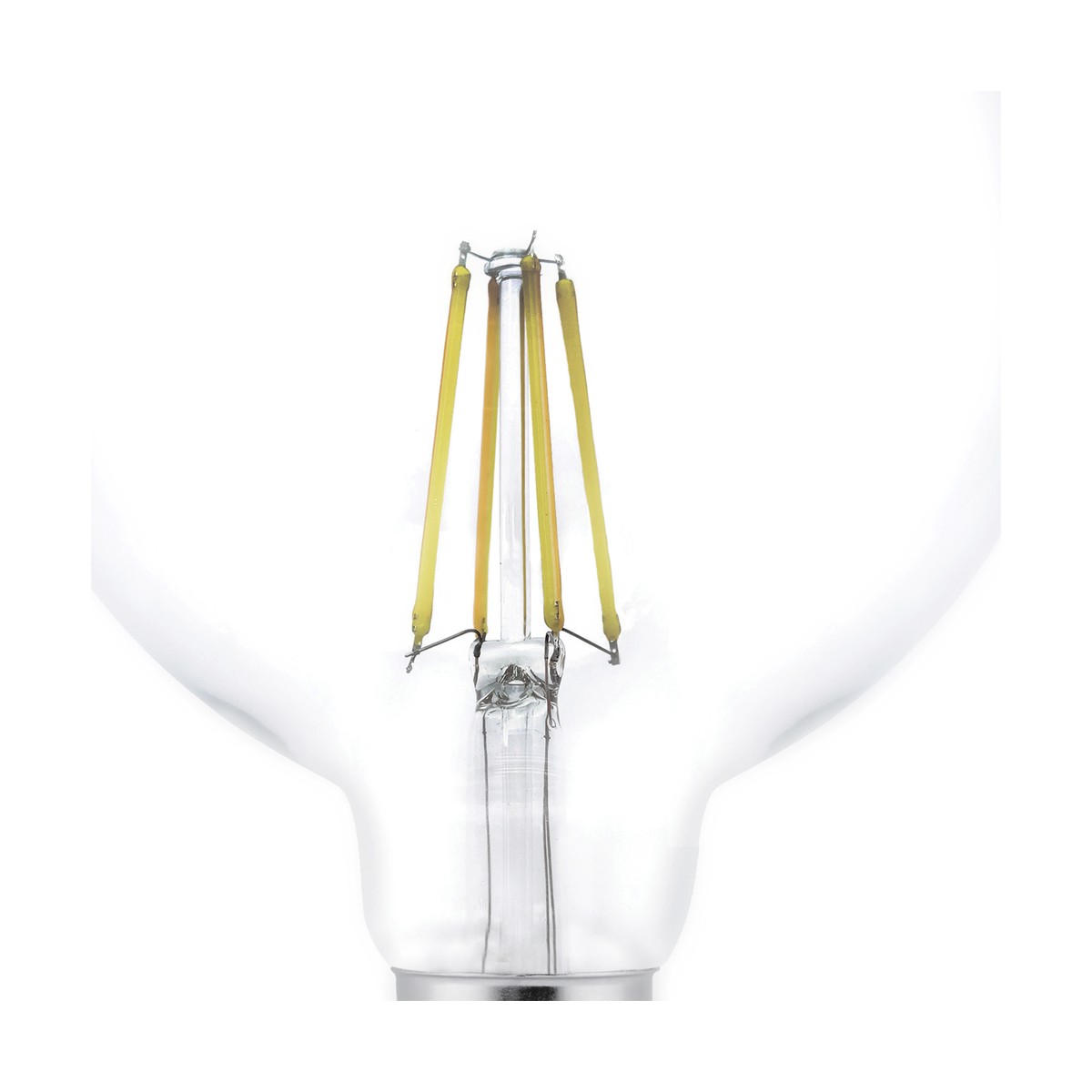 Bombilla globo de 125mm de vidrio transparente. LED de filamento de 6W de potencia con luz neutra en 4000K y flujo lumínico de 750 lm.