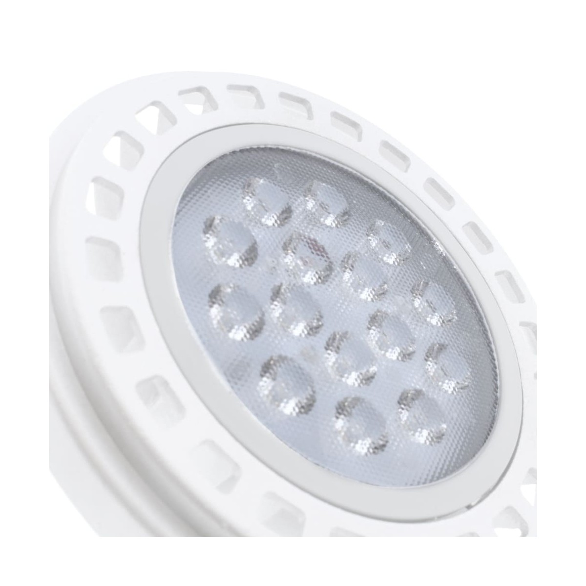 Bombilla Qr111 con rosca GU10 fabricada en PVC blanca, de 15W LED.