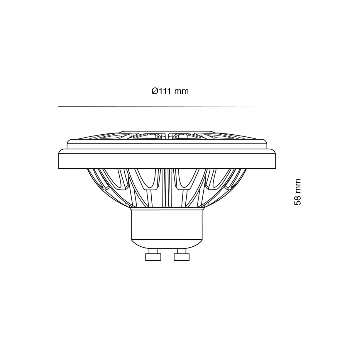 Bombilla Qr111 con rosca GU10 fabricada en PVC blanca, de 15W LED.
