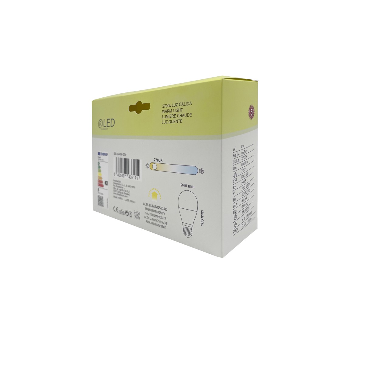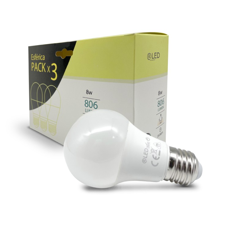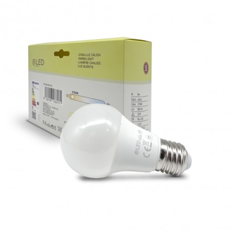 Pack de 3 bombillas LED E27 con temperatura de color 2700K. Iluminación LED de 8W, 806 lúmenes y temperatura de color blanca cálida. Haz de luz de 220º. Rosca E27 y forma A60. El pack incluye 3 bombillas.