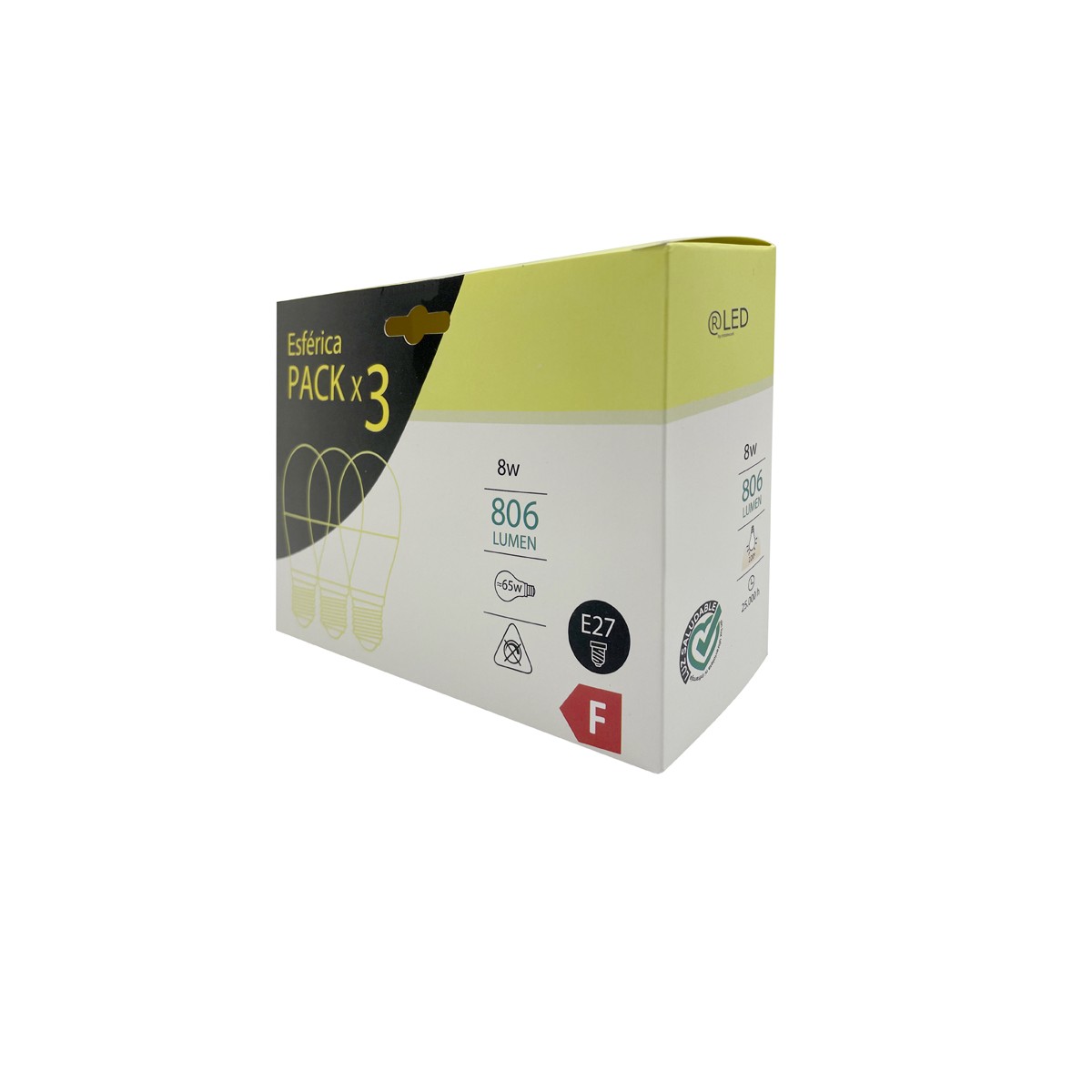Pack 3 Bombillas LED E27 A60 8W 806Lm 2700K
