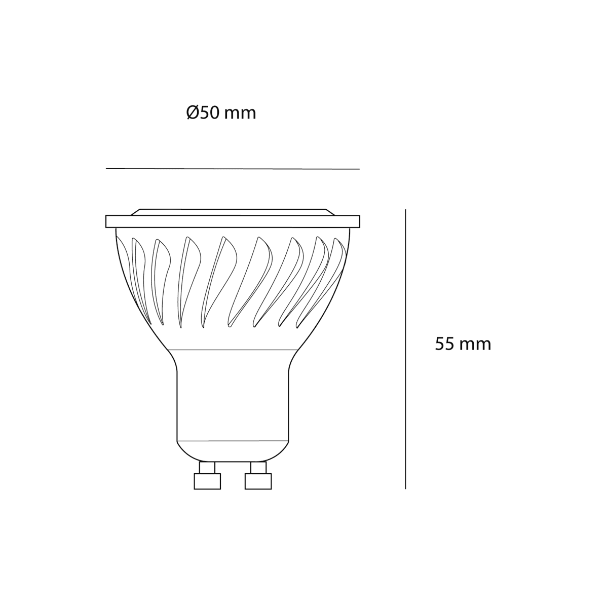 Bombilla LED GU10 con temperatura de color blanca fría. Iluminación LED de 6.2W, 620 lúmenes y temperatura de color blanca fría (6000K). Haz de luz de 110º. Encendido automático.