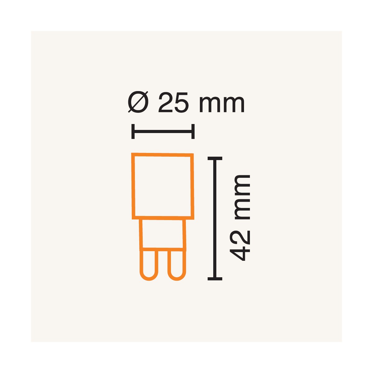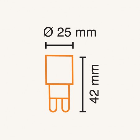 Bombilla rosca G9 de cerámica. Bombilla pequeña de cerámica rosca G9 para iluminación interior. LED de 3W, 300 lúmenes y temperatura de color blanca neutra (4000K). Ángulo de apertura de 24º. Rosca G9.