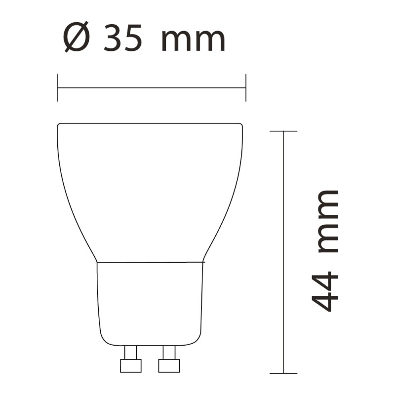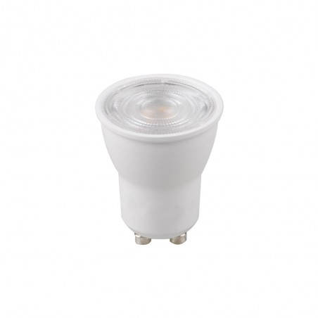 Bombilla GU10 Mini para empotrables y focos compacto. Bombilla de 35 mm. de diámetro con haz de luz de 38º. Luz LED blanca neutra de 3W y 270 lúmenes. Específica para empotrables y focos de diámetro compacto.