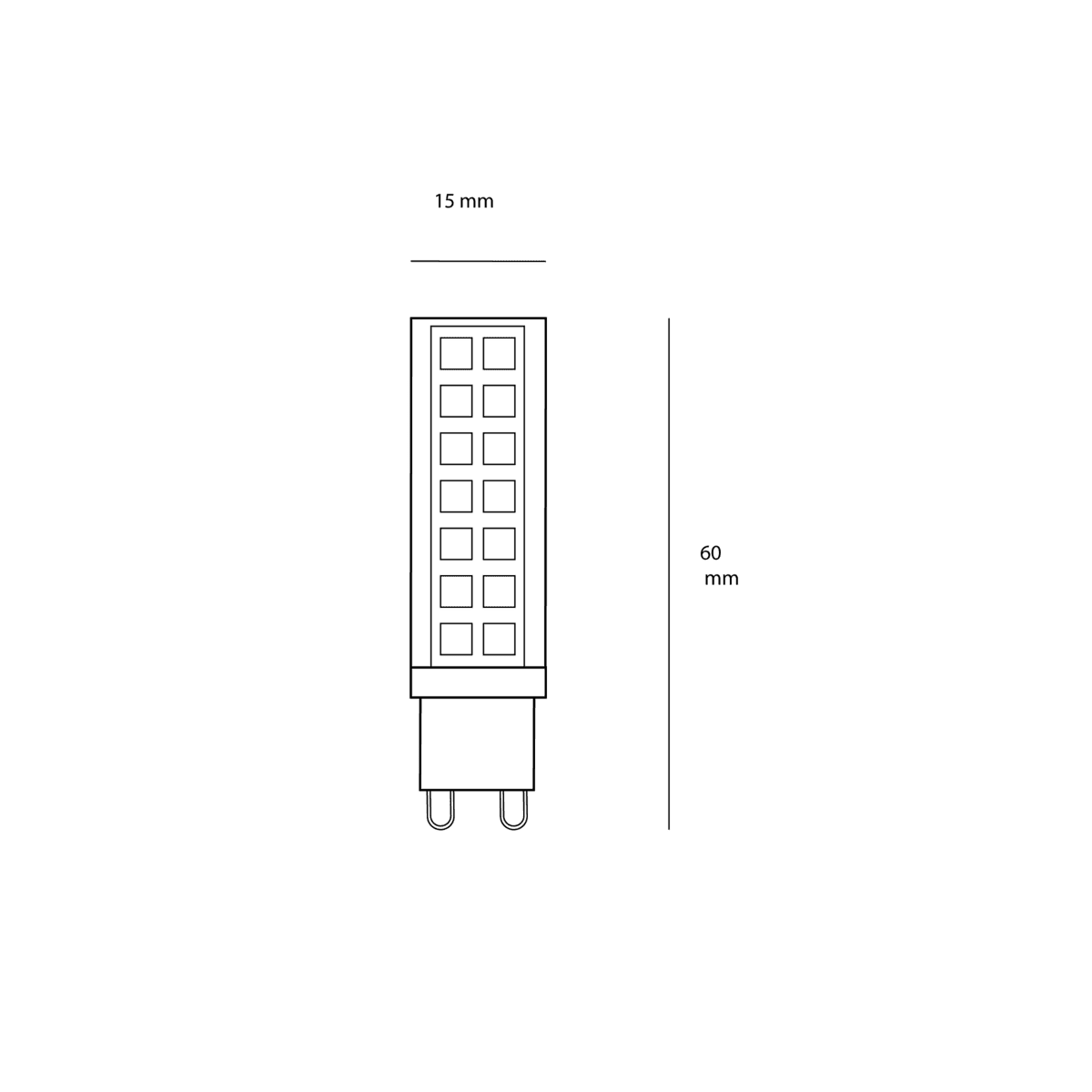 Bombilla Led con base G9 con 5W de potencia. Bombilla regulable de 450lm con luz blanca fría en 6000K. LA bombilla tiene 6cm de largo.