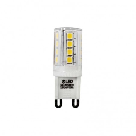 Bombilla LED SMD con base G9 de 50 mm de largo. Luz blanca natural de 4000K con un flujo luminoso de 350 lm.