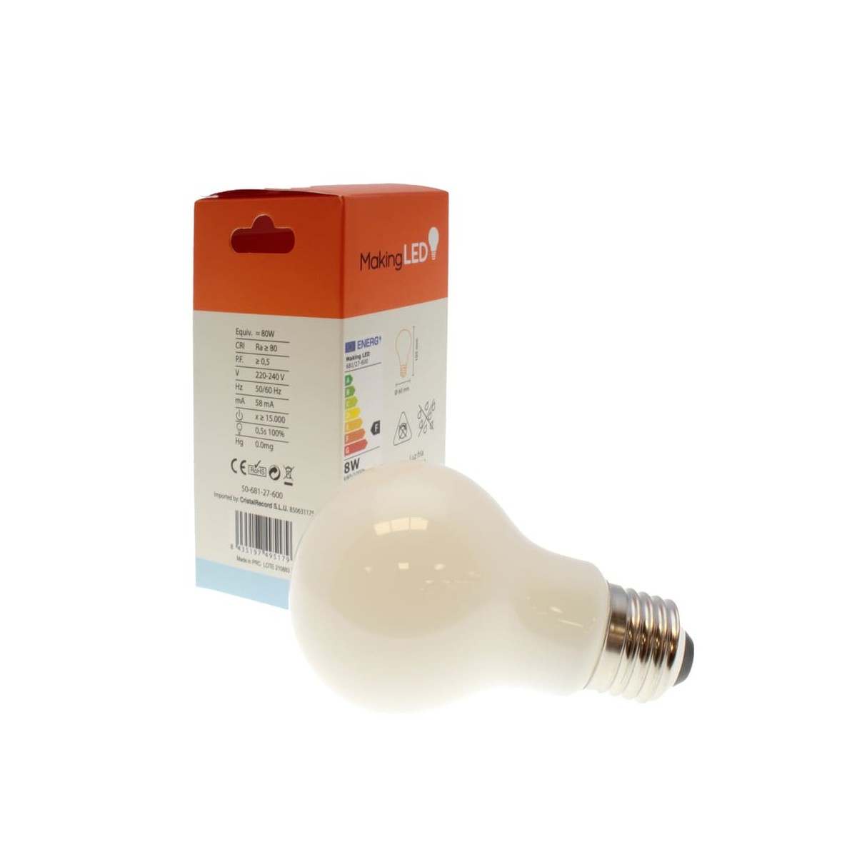 Bombilla A60 milky 8W 6000K