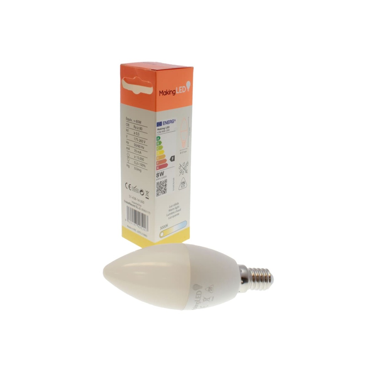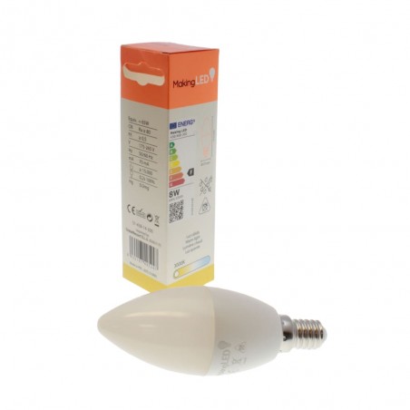 Bombilla con base E14, de 37mm fabricada en PVC con difusor blanco mate.