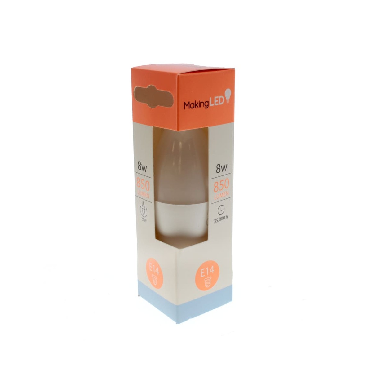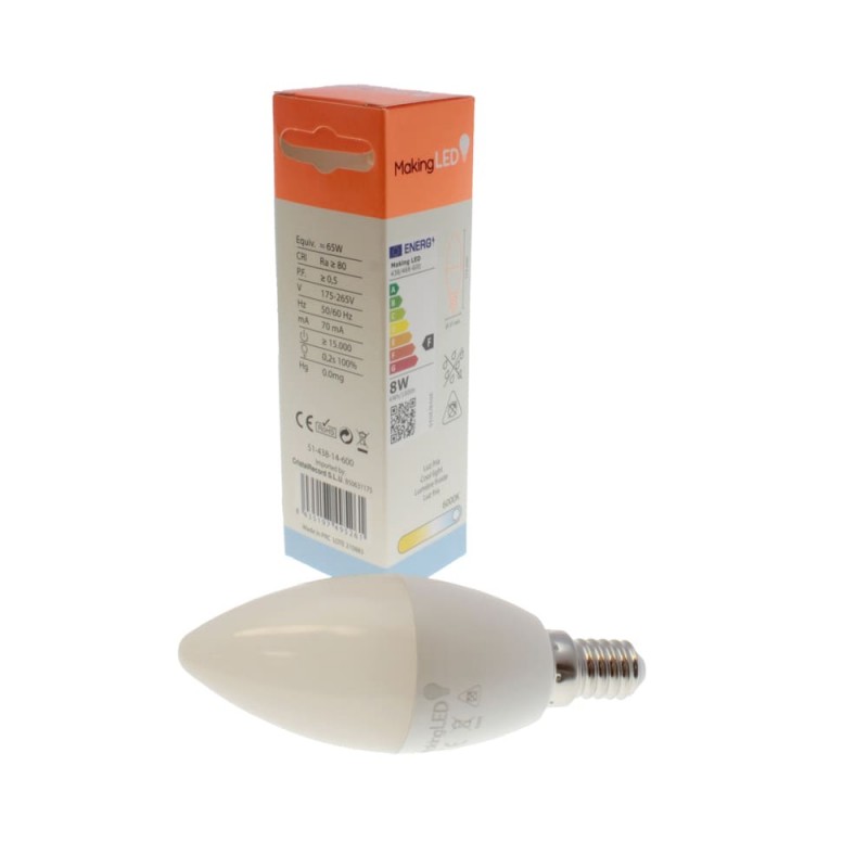 Bombilla con base E14, de 37mm fabricada en PVC con difusor blanco mate.