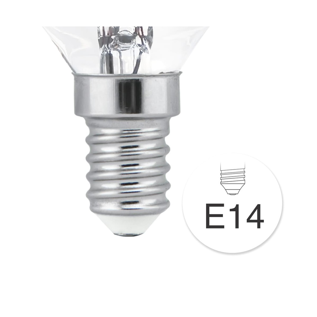 Bombilla de filamento LED decorativa esférica de 45mm con rosca E14. Bombilla de cristal transparente de 6W con luz blanca fria y un flujo luminoso de 800lm.
