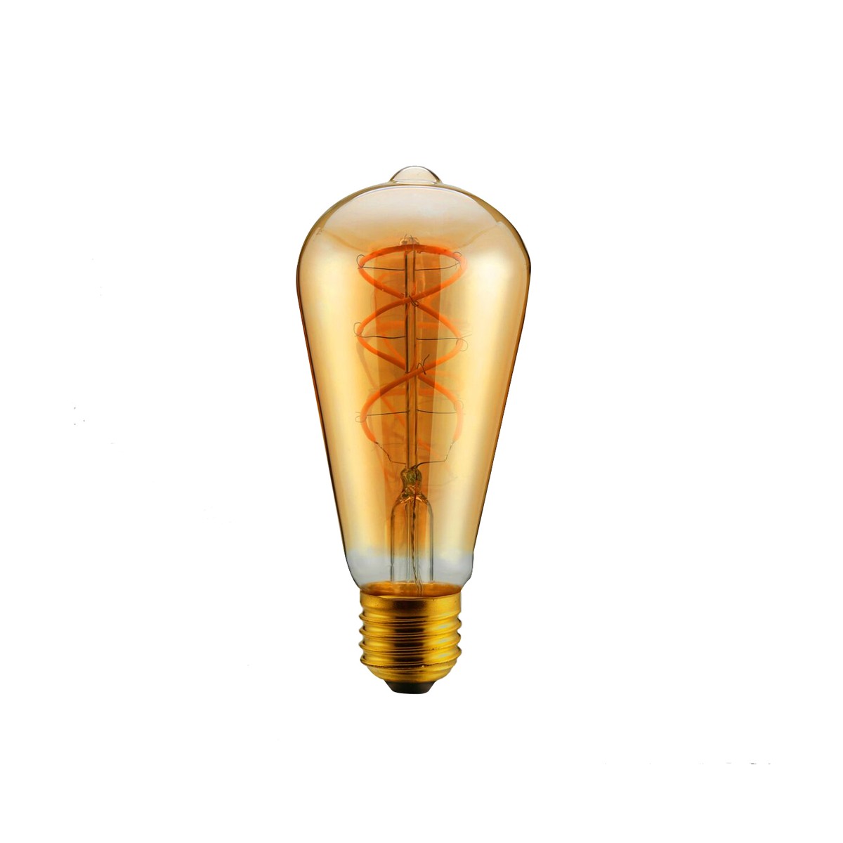 Bombilla decorativa pebetera de 64mm con filamento led en espiral. Fabricada en cristal con acabado caramelo de estilo retro.
