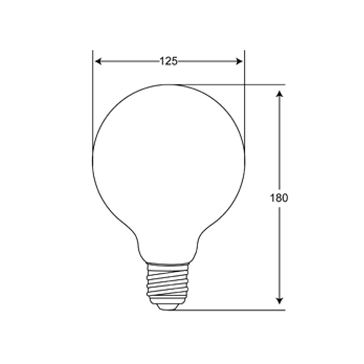 Bombilla globo de 125mm de cristal con acabado caramelo con rosca E27 y luz cálida de 2000K. Bombilla decorativa con filamento led en espiral.