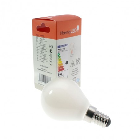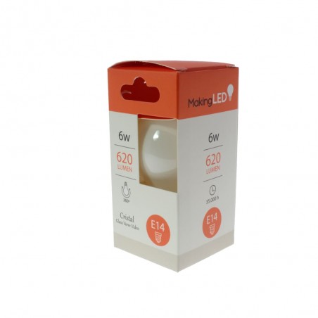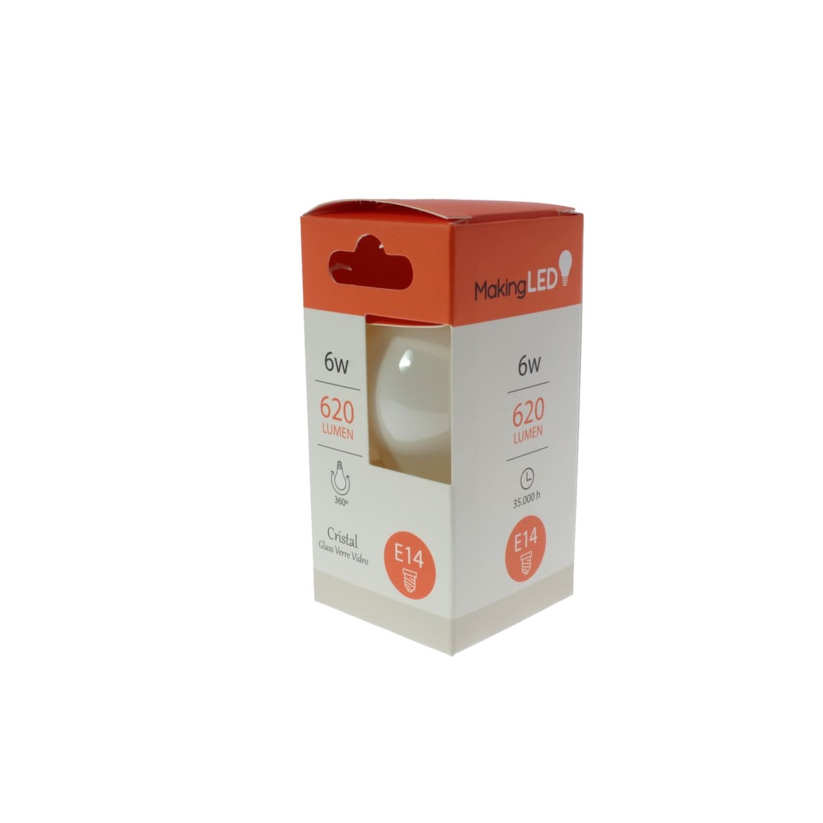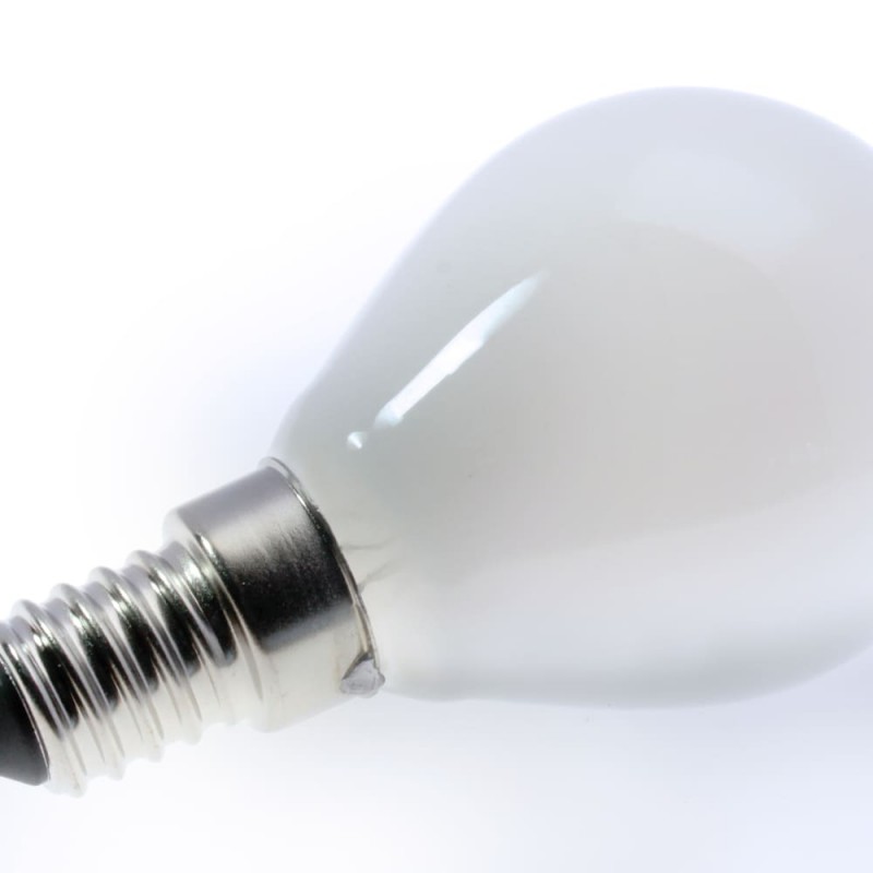 Bombilla esférica G45 con cúpula de cristal blanco brillo.