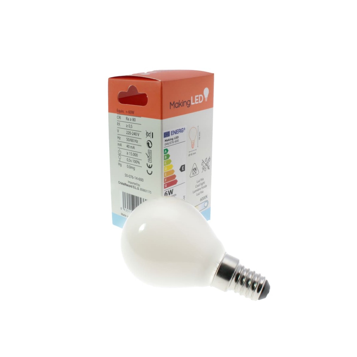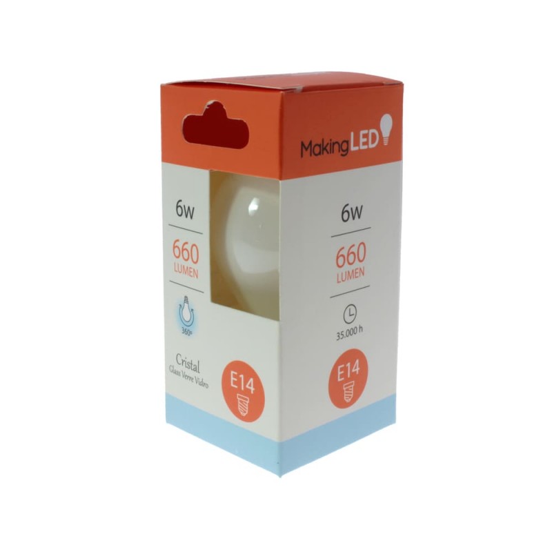 Bombilla esférica G45 con cúpula de cristal blanco brillo.