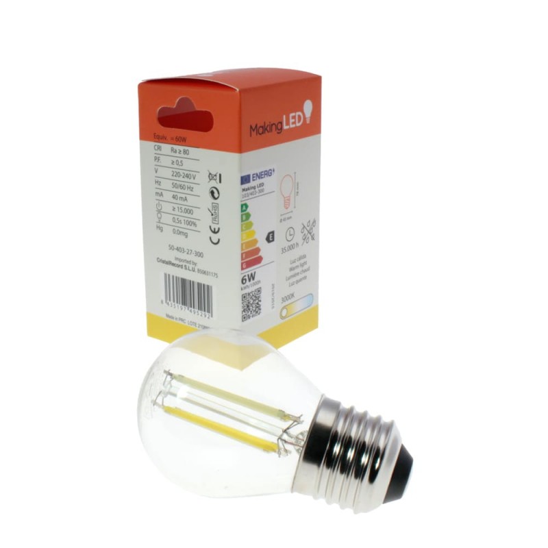 Bombilla transparente G45 E27 6W dimable 3000K