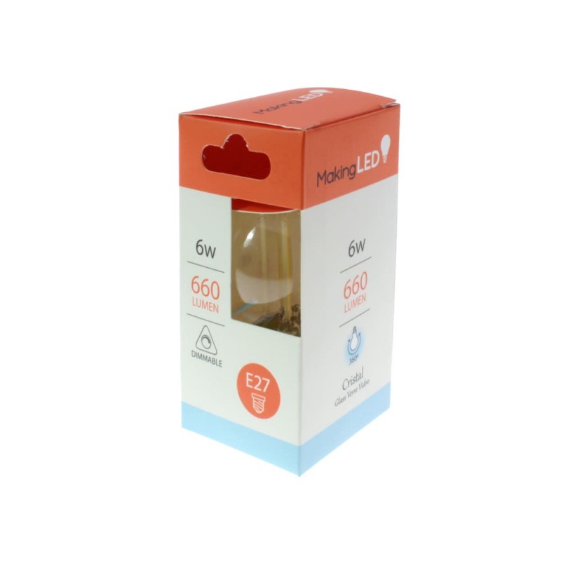 Bombilla esférica G45 con cúpula de cristal transparente y led de filamento de aspecto retro