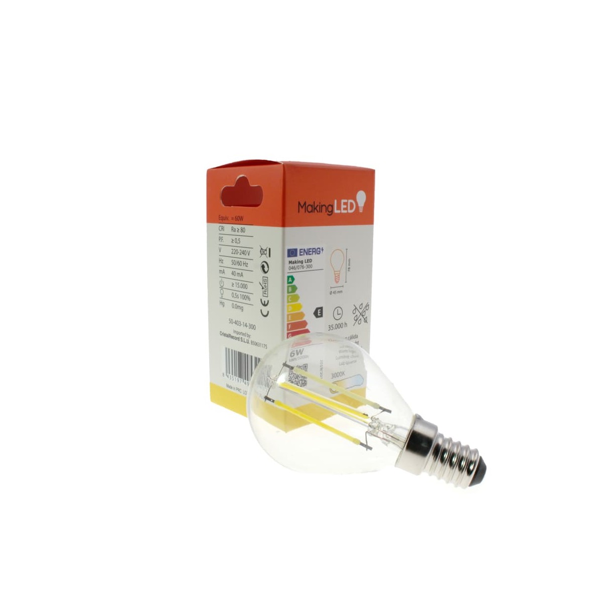 Bombilla transparente G45 E14 6W dimable 3000K