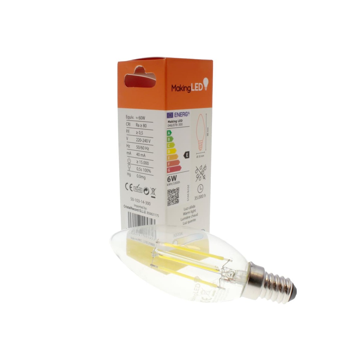 Bombilla vela C35 con cúpula de cristal transparente y led de filamento de aspecto retro