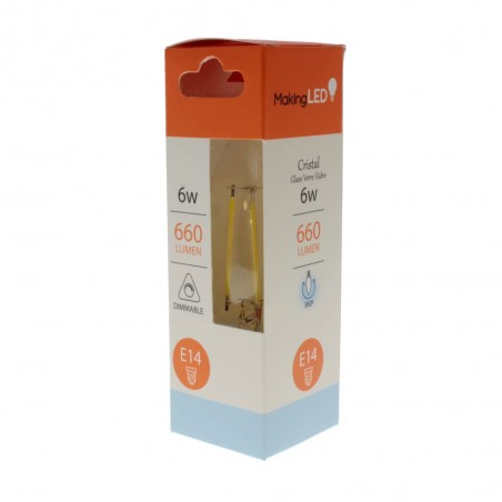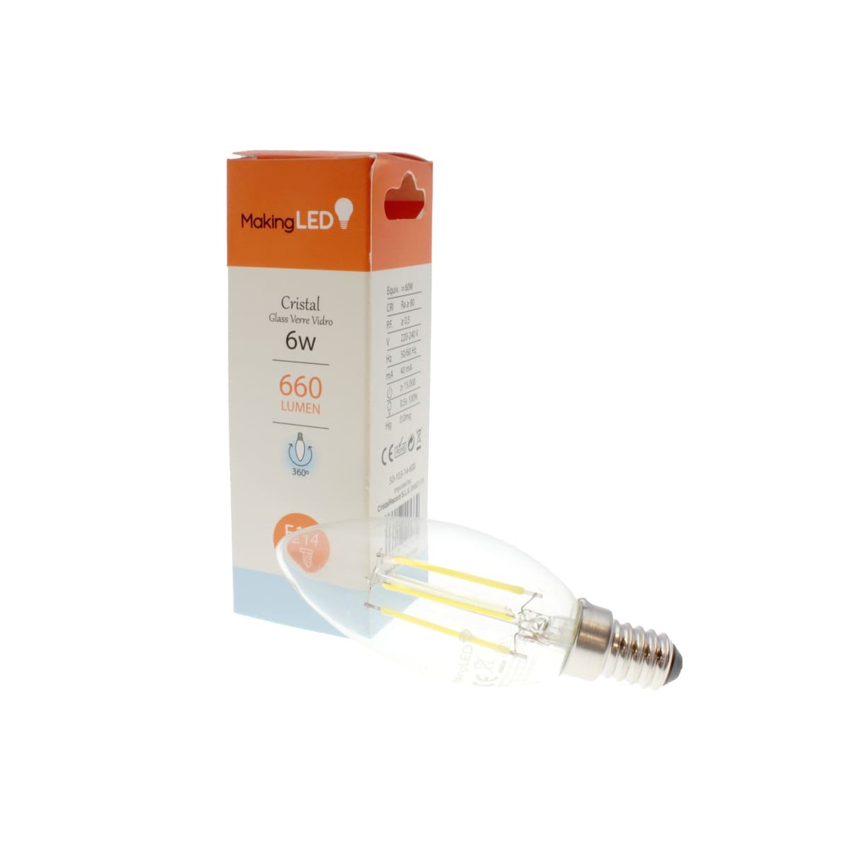 Bombilla vela C35 con cúpula de cristal transparente y led de filamento de aspecto retro